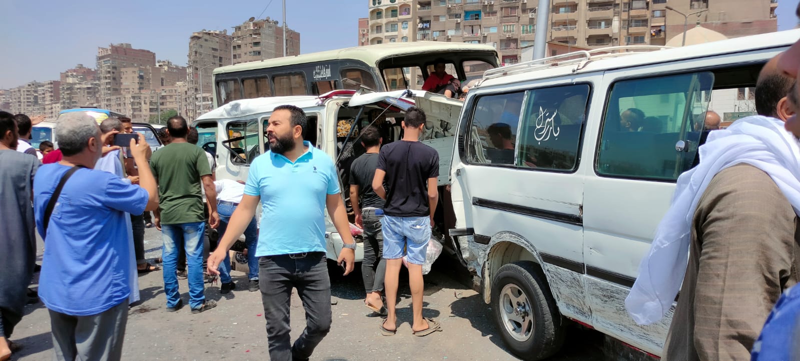 السائق في حالة خطيرة.. إصابة 10 أشخاص إثر حادث تصادم بـ شارع جسر السويس