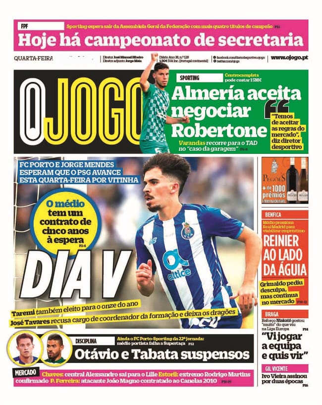 سلطت الصحيفة البرتغالية الضوء في غلافها على خليفة مدرب الأهلي المقبل ريكاردو سواريس مع فريق جيل فينسنتي البرتغالي، وقالت إن إيفو فييرا هو رجل المرحلة المقبلة مع جيل فينسنتي بعد رحيل سواريس لتدريب الأهلي.