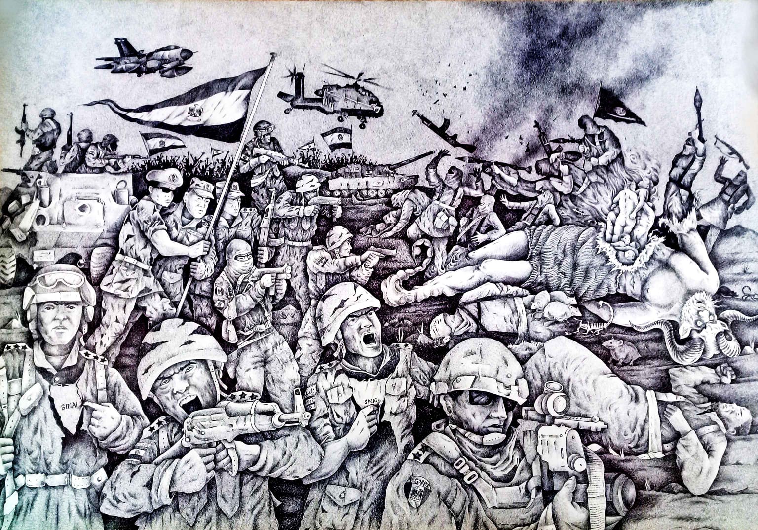 يضم المعرض 30 لوحة بالحبر الجاف، يرسم فيها الفنان بعض الجوانب المضيئة من تاريخ مصر العظيم الممتد على مدار أكثر من 7 آلاف عام، فكثيرة هي محطات العظمة في حياة الوطن، وهناك أيضا لحظات المرارة والألم وما بين هذا وذاك سطر الجنود البواسل سجلا هو الأورع في تاريخ الأمم، رغم كل الصعاب التي واجهتها الأمة.
