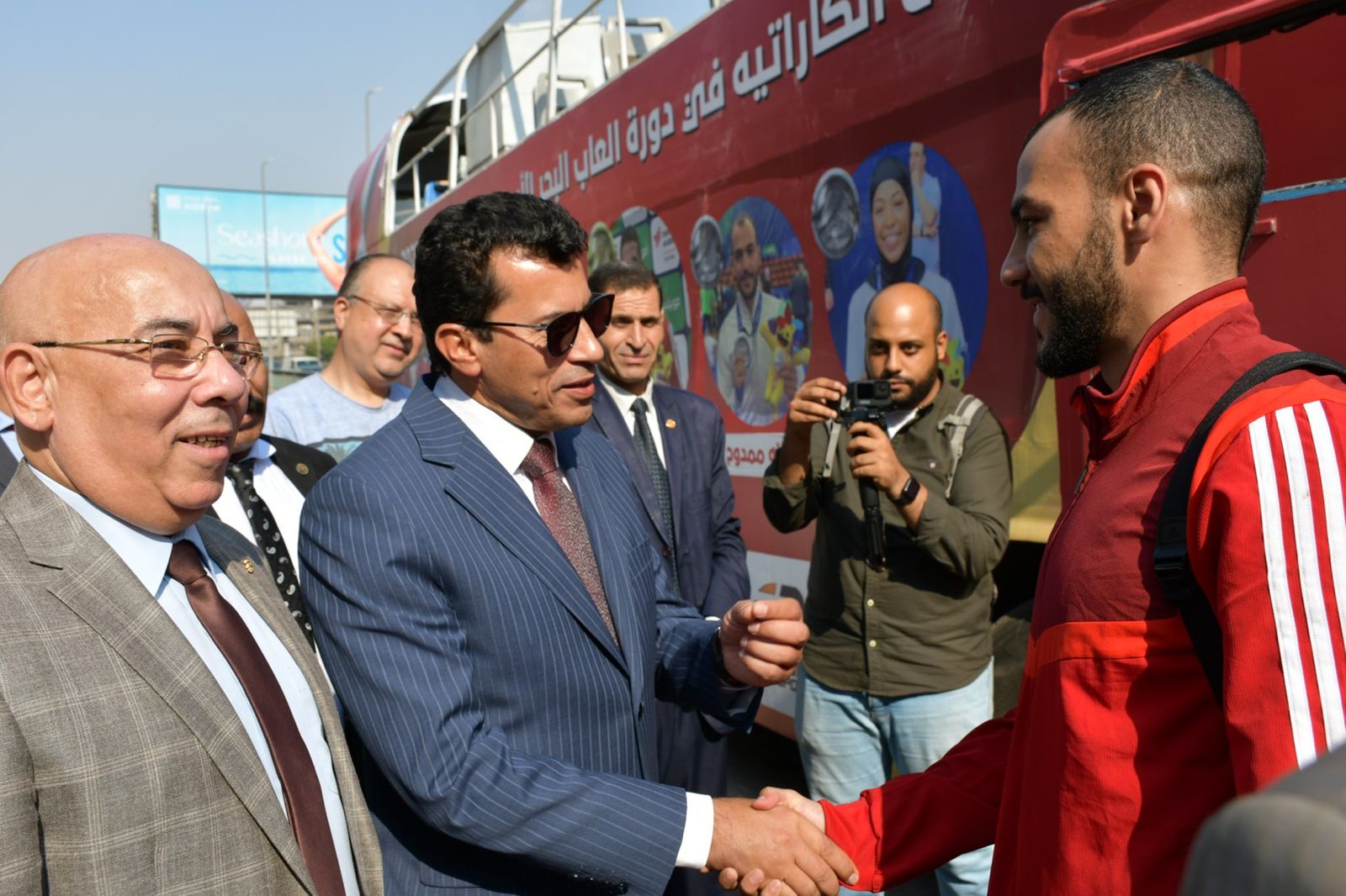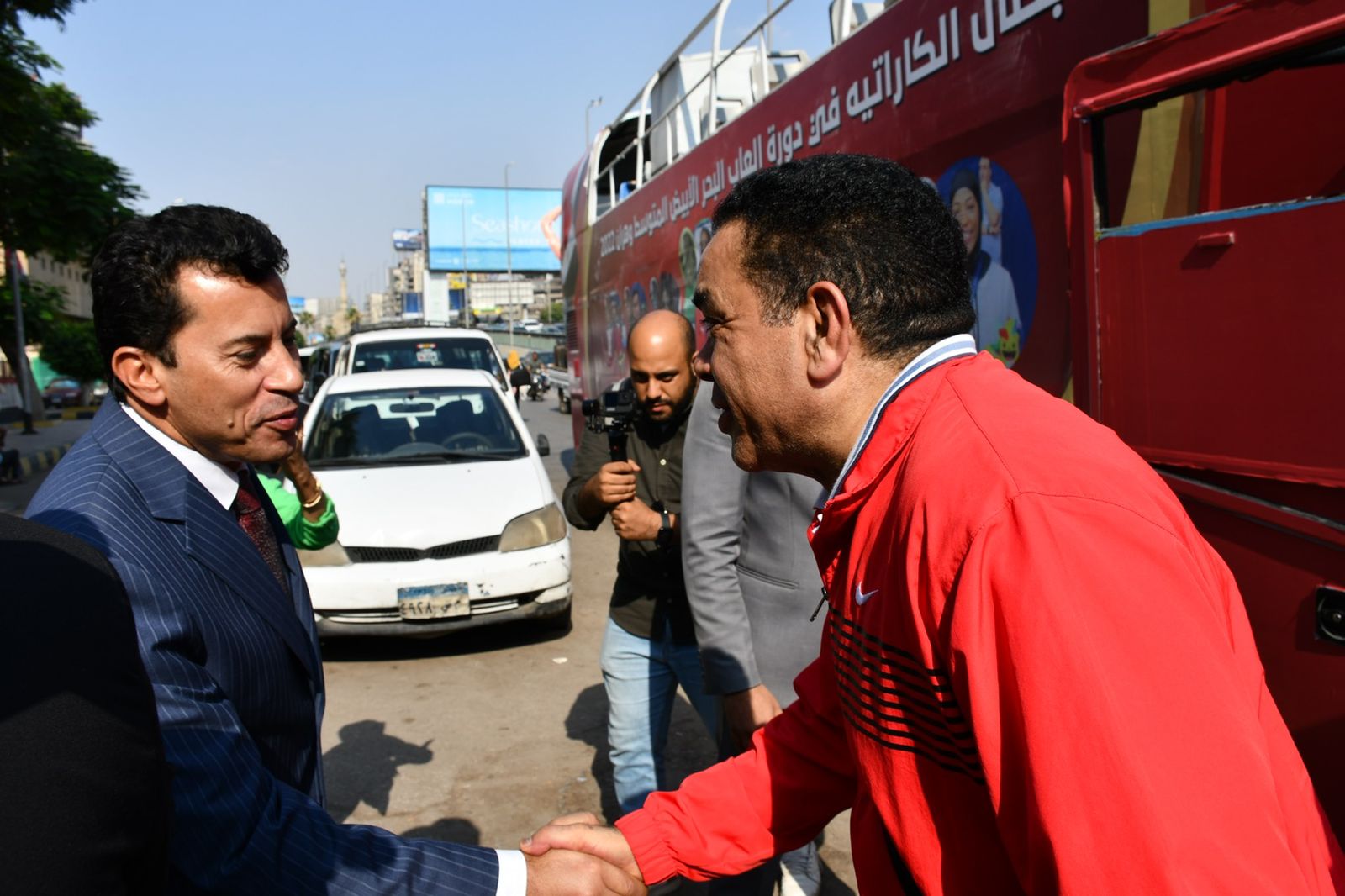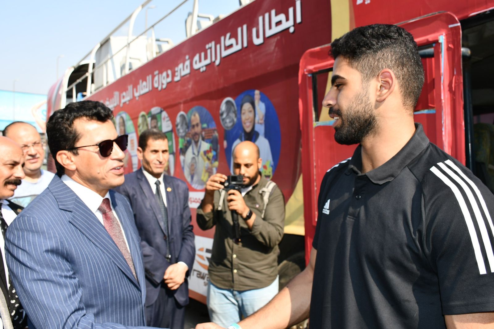 وكان وزير الشباب والرياضة قد كلف -فى وقت سابق- وفدًا رسميًا من الوزارة لاستقبال بعثة الكاراتيه بمطار القاهرة الدولى فور وصولهم من الجزائر، برفقة رئيس الاتحاد المصرى للكاراتيه.
