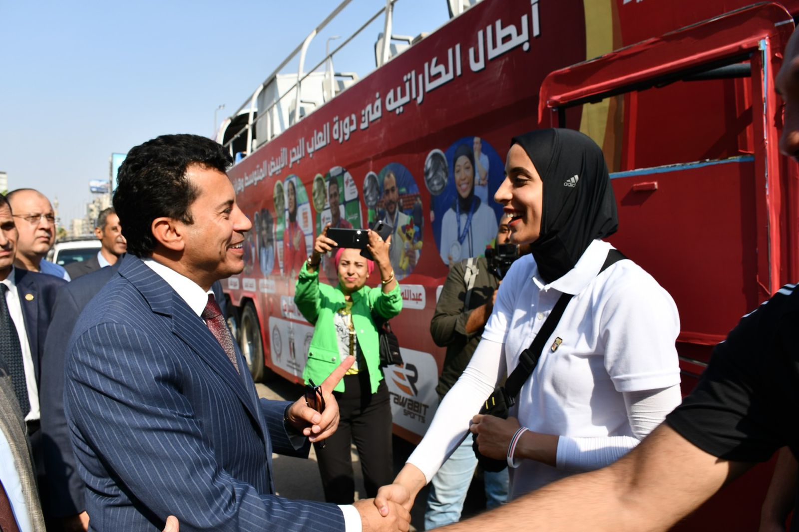 وزير الرياضة يستقبل أبطال الكاراتيه بعد الفوز بـ7 ميداليات في دورة ألعاب البحر المتوسط