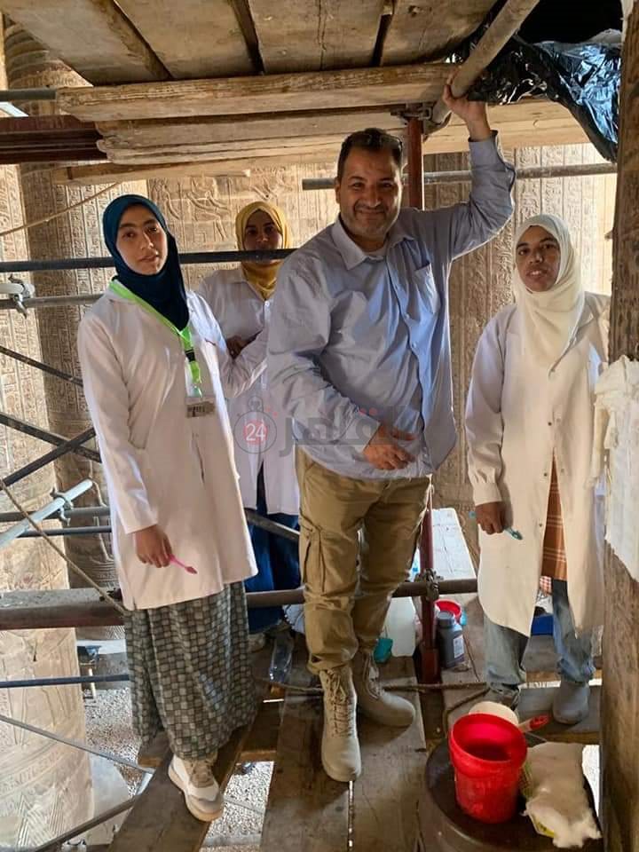 وأشار المصدر إلى أن فريق الترميم قام بتنظيف نقوش المعبد الملونة والتي عانت على مر القرون الماضية من تجمع طبقات سميكة من السناج والأتربة والاتساخات، بالإضافة إلى مخلفات الطيور والوطاويط، وعشش العناكب وكذلك تكلسات الأملاح، التي خلفتها عوامل الزمن منذ ما يقرب من 2000 عام، مما استلزم إعداد مشروع ترميم وتطوير للمعبد للحفاظ عليه وعلى نقوشه الفريدة والمتميزة.