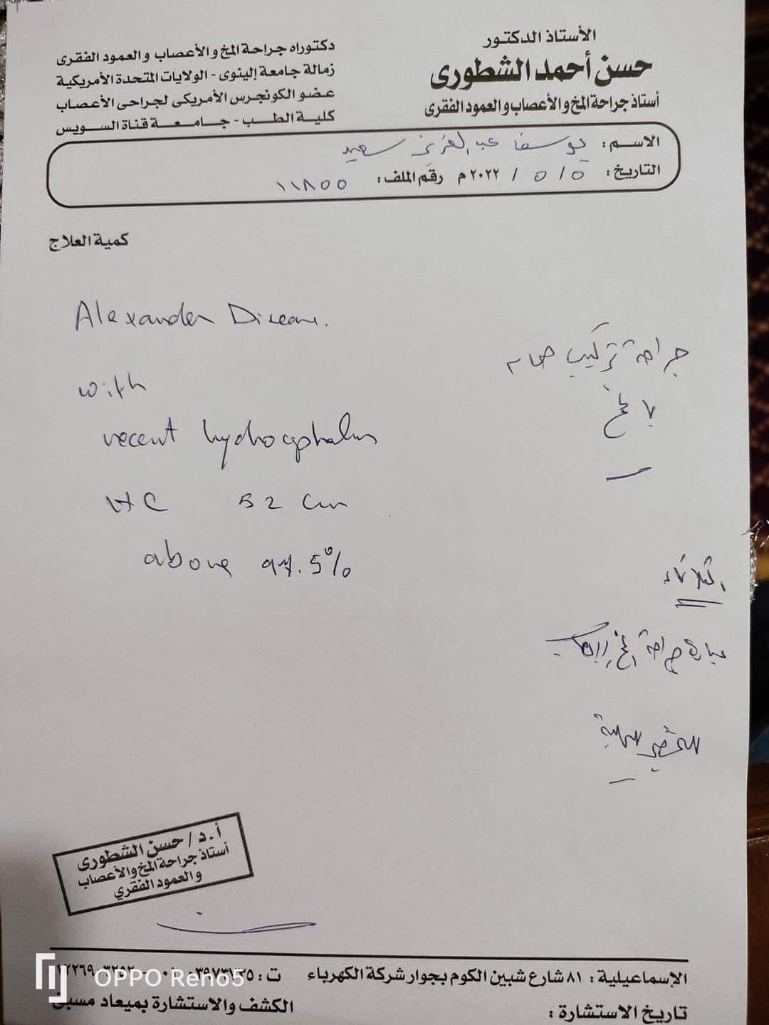 وأشار والد الطفل، إلى أنه أجرى العديد من الفحوصات الطبية للطفل بجميع مستشفيات مصر العامة، أبرزها الدمرداش وأبو الريش ومستشفى أسيوط الجامعي، ولكن لم يؤتي بفائدة، نظرا لحاجة الطفل لجهاز على المخ يساعد على التخفيف من الأعراض، والذي يبلغ ثمنه 30 ألف جنيه، لهذا يستغيث بالمسؤولين لتوفير العلاج.
