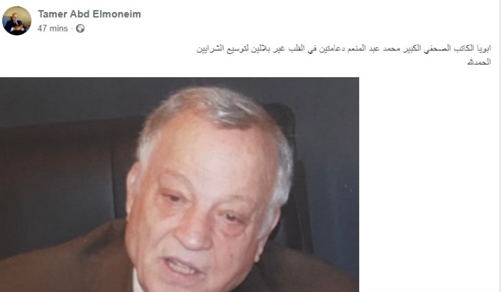 ونشر تامر عبد المنعم صورة لوالده عبر حسابه الرسمي على فيسبوك، وعلق قائلًا: أبويا الكاتب الصحفي الكبير محمد عبد المنعم، ركب دعامتين في القلب.. غير بلالين لتوسيع الشرايين..الحمدلله على كل شيء.