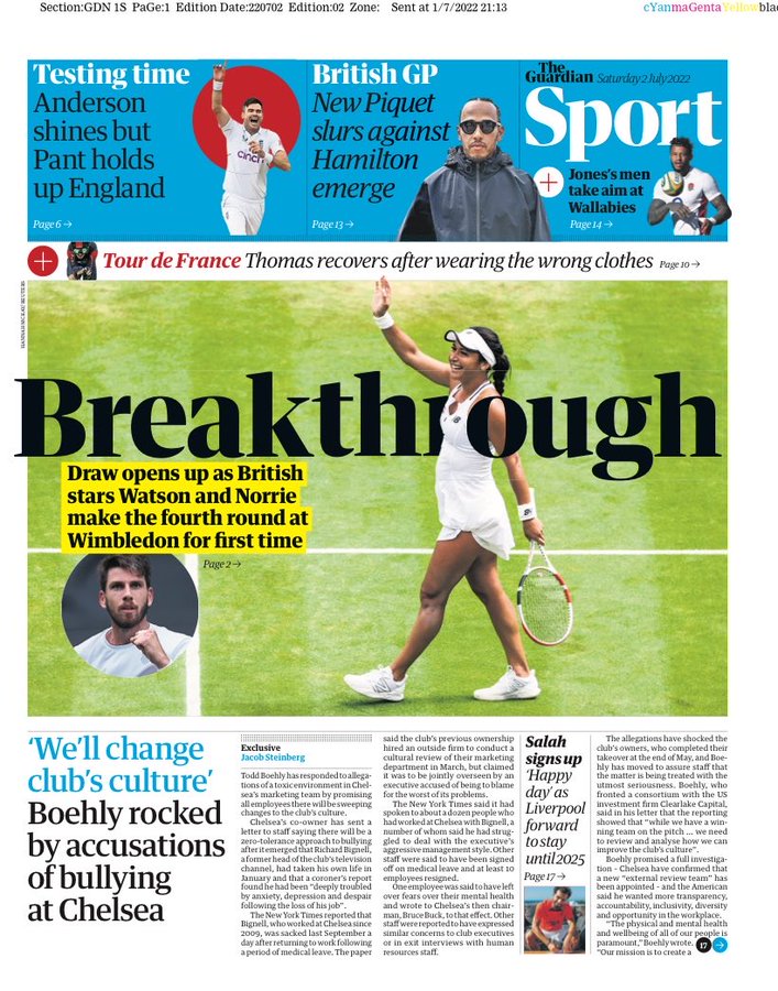 يرصد القاهرة 24 لمتابعيه جولة في الصحف العالمية اليوم السبت 2 يوليو 2022، حيث سلطت الصحف الإنجليزية الضوء على تجديد عقد الدولي محمد صلاح مع فريقه ليفربول الإنجليزي.