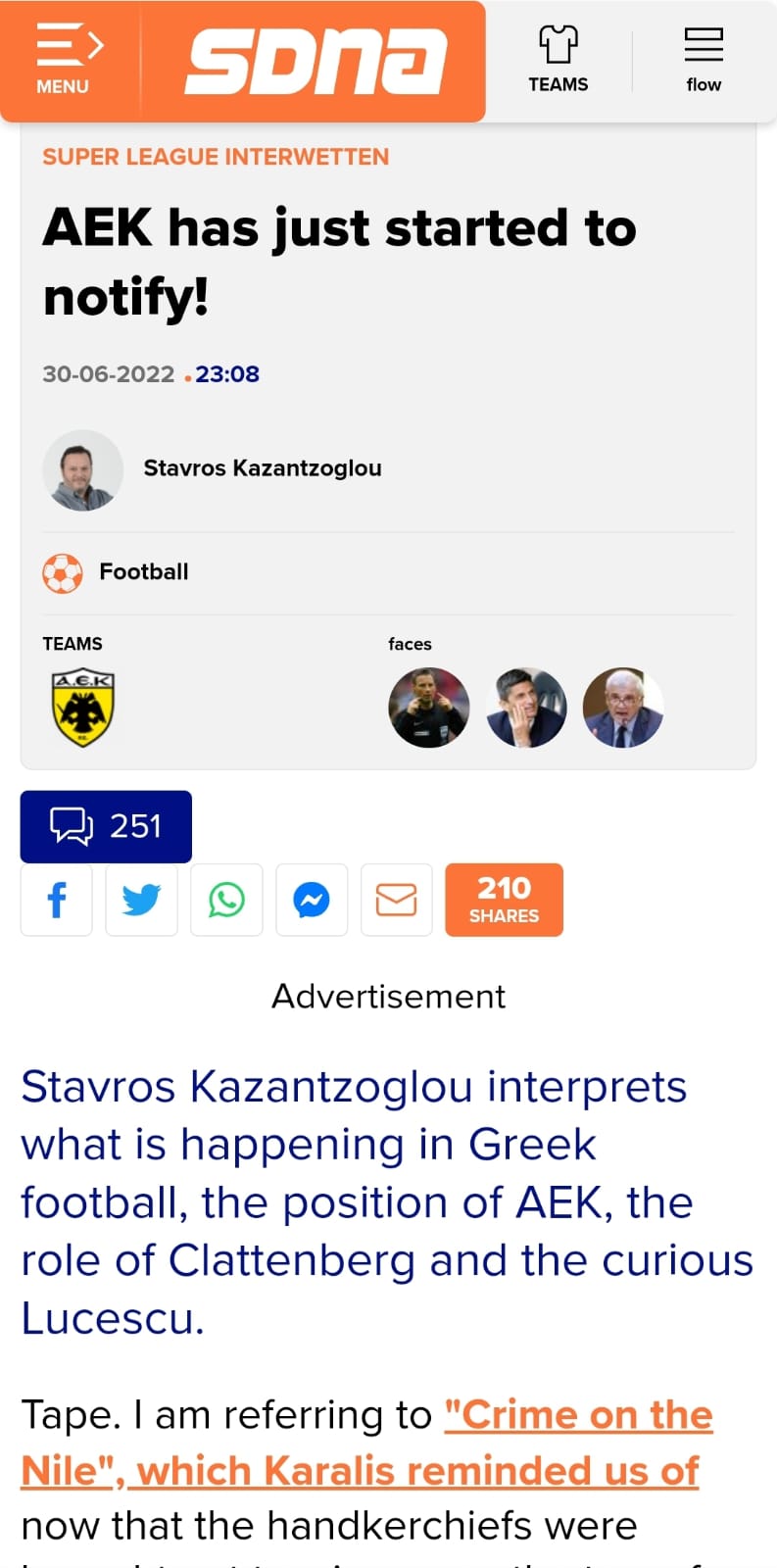 ووصف ثوميديس في مقال نُشر على موقع SDNA اليوناني، ما يحدث بـ جريمة علي النيل، بعدما وقع الحكم الانجليزي السابق عقد عمل في مصر، بينما عقده في اليونان لم ينته بعد.