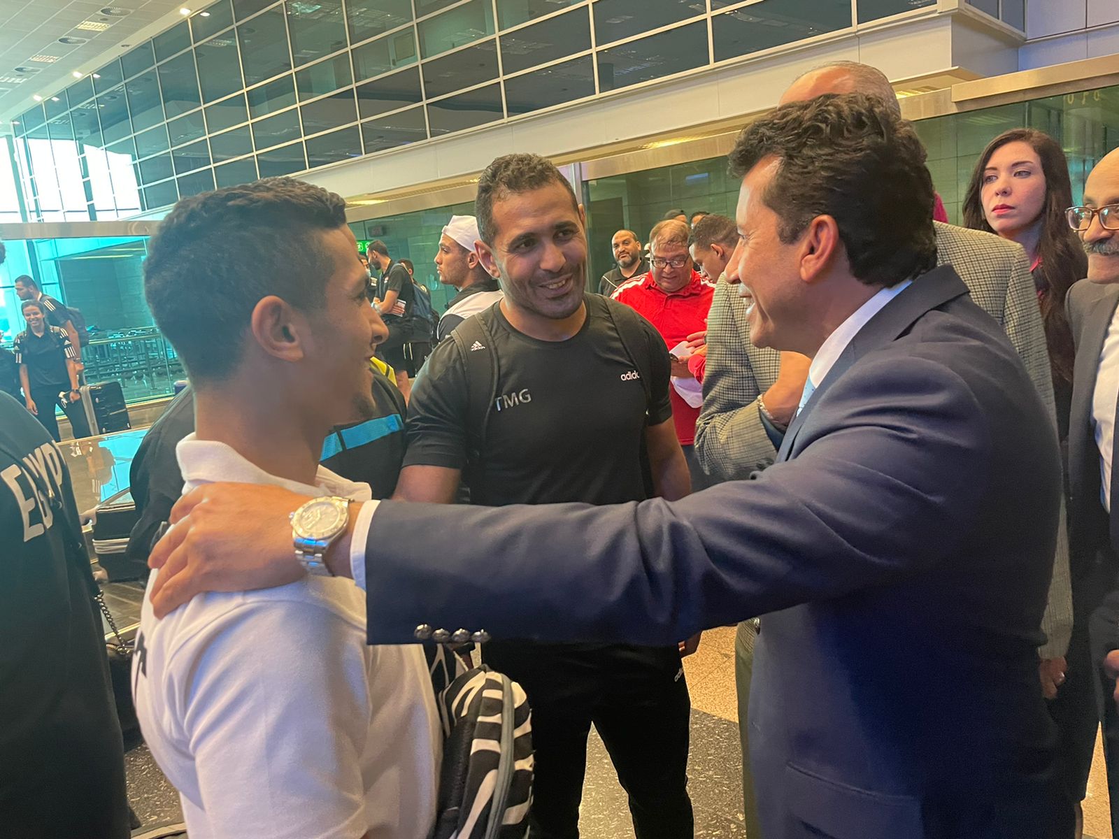 وزير الشباب والرياضة يستقبل الفوج الأول من البعثة المصرية بعد انتهاء منافساتهم بدورة البحر المتوسط