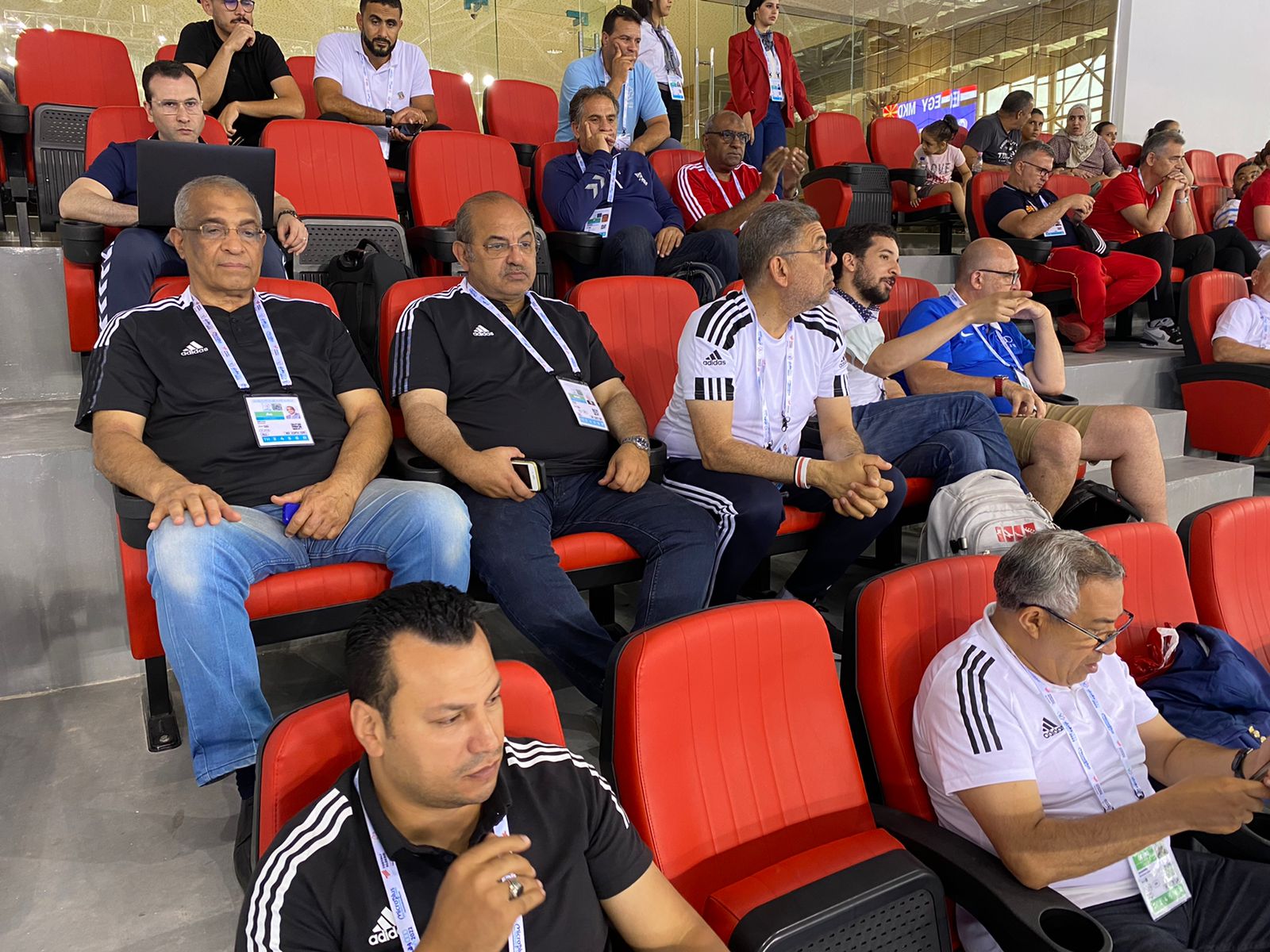 وتواجد في المباراة لدعم المنتخب المهندس هشام حطب، رئيس اللجنة الأولمبية، الدكتور عبدالعزيز غنيم أمين صندوق اللجنة الأولمبية ورئيس البعثة، الدكتور الباسل عبدالله عضو مجلس إدارة اللجنة الأولمبية ونائب رئيس البعثة، وعدد من اللاعبين والإداريين والأجهزة الفنية التي انتهت منافستهم بالبطولة.