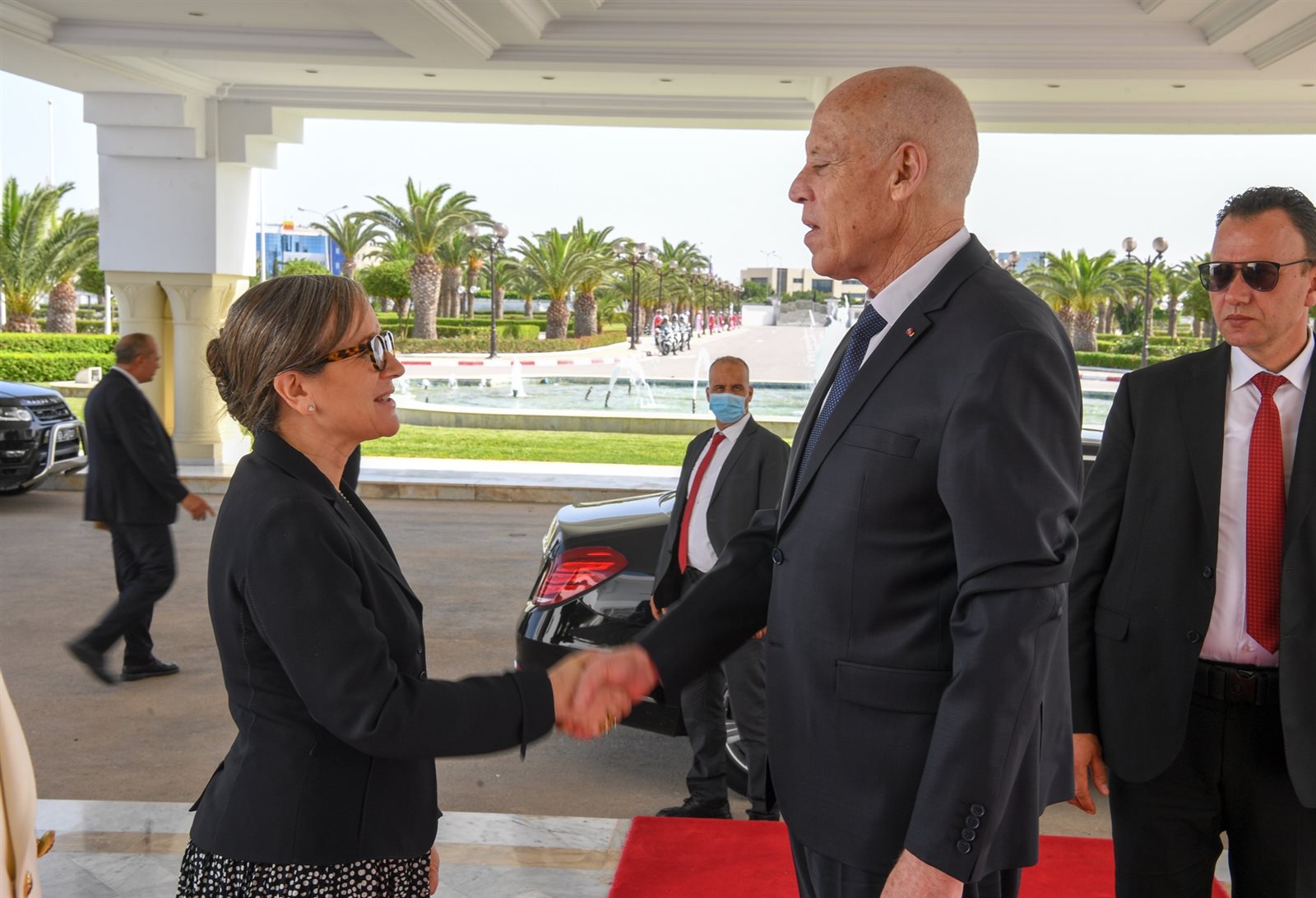 وكان في توديع الرئيس التونسي بالمطار، نجلاء بودن رمضان، رئيسة الحكومة، وكمال الفقي، والي تونس، وسعاد عبد الرحيم، رئيسة بلدية تونس، وأعضاء الديوان الرئاسي، والسفير عزوز باعلال، سفير الجمهورية الجزائرية الديمقراطية الشعبية بتونس.
