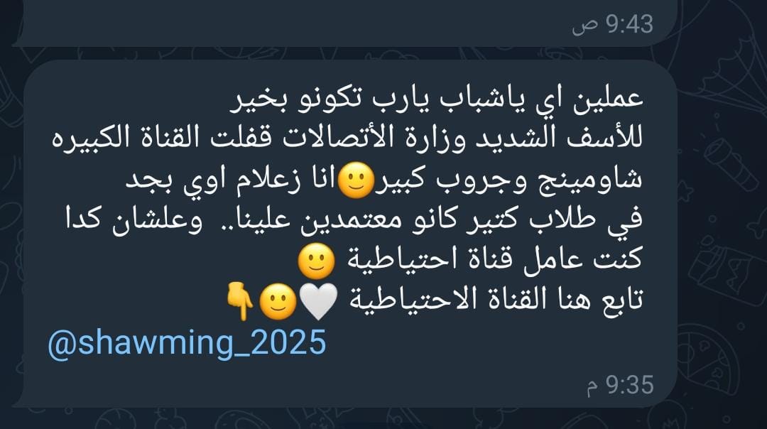 وزارة الاتصالات تغلق كبرى قنوات شاومينج على تليجرام
