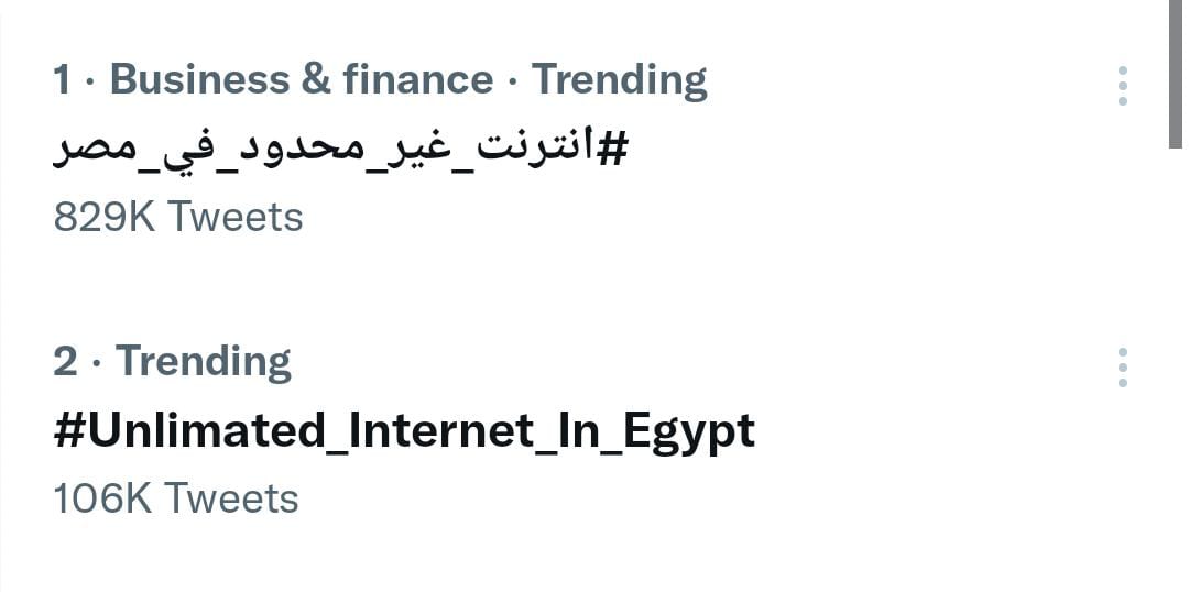 تصدر هاشتاج إنترنت بلا حدود في مصر، لليوم الثالث على التوالي مركز أول على تويتر وفيسبوك، ليشير إلى المشاكل التي تواجه مستخدمين الإنترنت في مصر.
