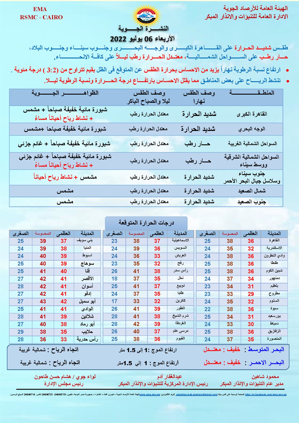 حالة الطقس غدا الأربعاء 6-7-2022 في مصر