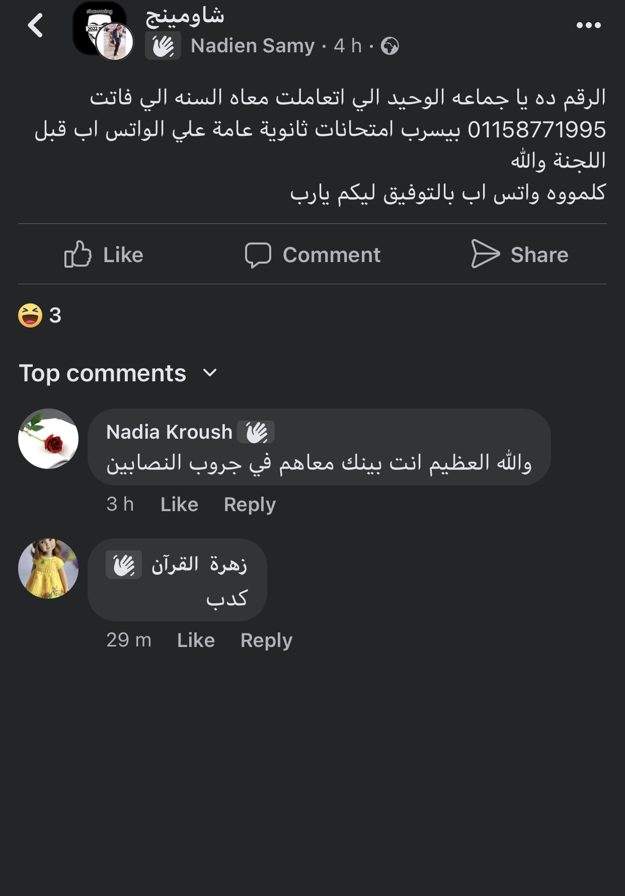 نصت الرسالة المتداولة في صفحات مواقع التواصل الاجتماعي عبر عدد من الحسابات الوهمية على ما يلي: الرقم ده يا جماعه الوحيد اللي اتعاملت معاه السنة اللي فاتت، بيسرب امتحانات ثانوية عامة على الواتس اب قبل اللجنة والله، كلموه واتس اب بالتوفيق ليكم يارب.