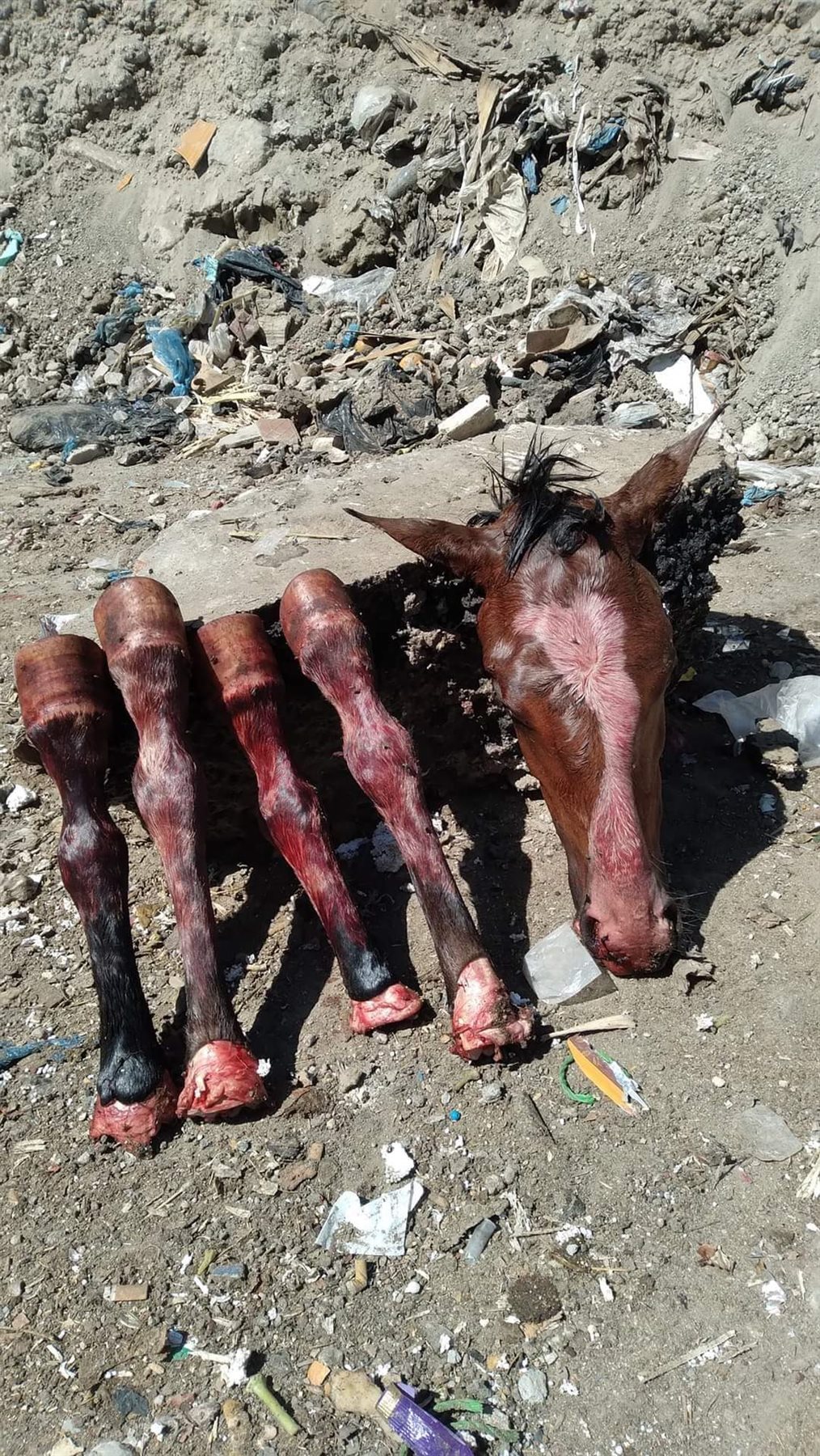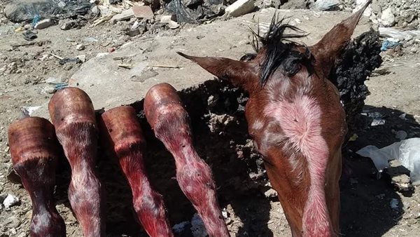 وكان قد تداول عدد من رواد موقع التواصل الاجتماعي فيس بوك، صورًا لأجزاء من حصان مذبوحً وملقى وسط القمامة بمنطقة الرأس السوداء.