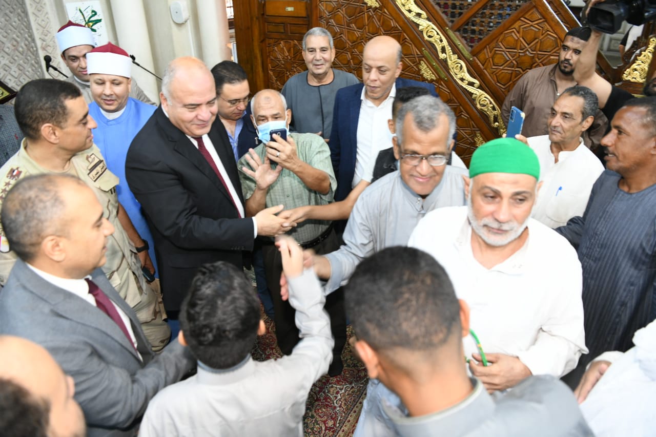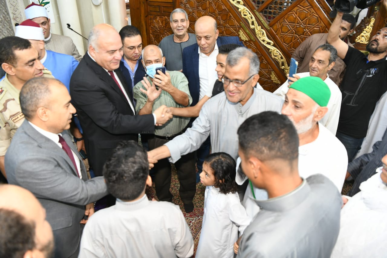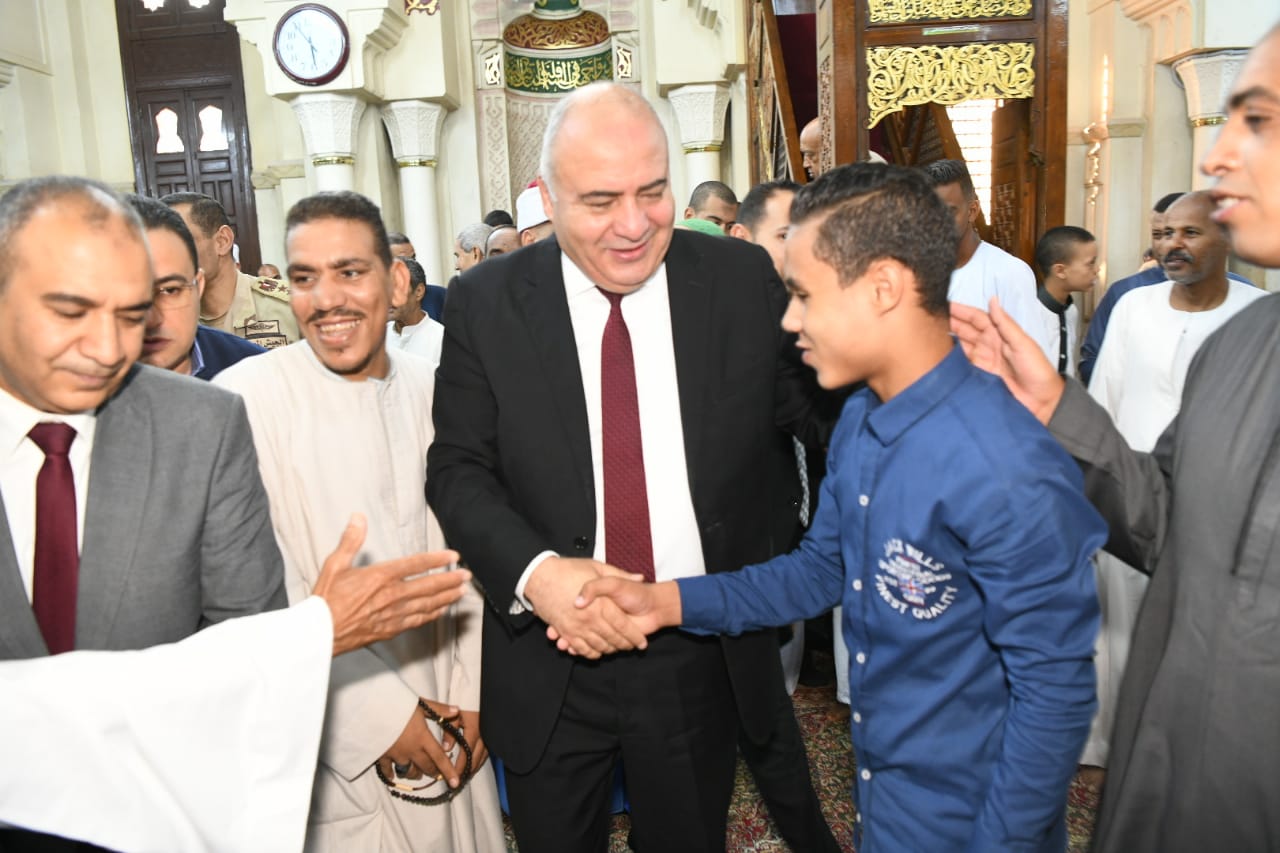 كما حرص محافظ قنا على تبادل التهنئة بعيد الأضحى المبارك مع المصلين وسط فرحه وسعادة غامرة.