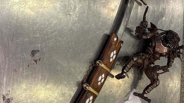 وبتفتيش حقائب الراكب يدويًا بواسطة السيد موسى مأمور الجمرك، وجد سيف معدني ذو نصل حاد أفاد تقرير المقدم أحمد حمد من إدارة الحماية المدنية، المفرقعات، بأنه محظور حيازته طبقًا للقانون رقم 394 لسنة 1951.
