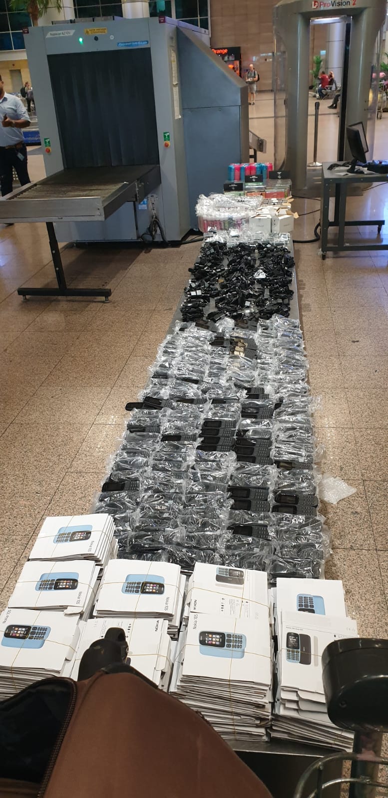 جاء ذلك بعد أن لاحظ حسين هيكل مدير ادارة الجمرك عند استلام ورديته العمل ومروره في صالة الوصول اختباء احد الركاب وراء احد الاعمدة مترقبا لحظة التسليم والتسلم للخروج بحقائبه من احد ابواب الصالة، وقام مدير الجمرك بتكليف احمد فؤاد حامد مدير الحركة المشرف على الصالة ومحمود عبد المولي مأمور الجمرك بتتبع الراكب وتفتيش حقائبه مما اسفر عن ضبط ٢٤٩ هاتف محمول و١٩٤ بطارية و٢٠٨ شاحن و٤٢٠ سيجارة الكترونية و٤٠٨ عبوة زيت خاص بهذه الشيش و١٧٨ عبوةً مستحضرات تجميل.