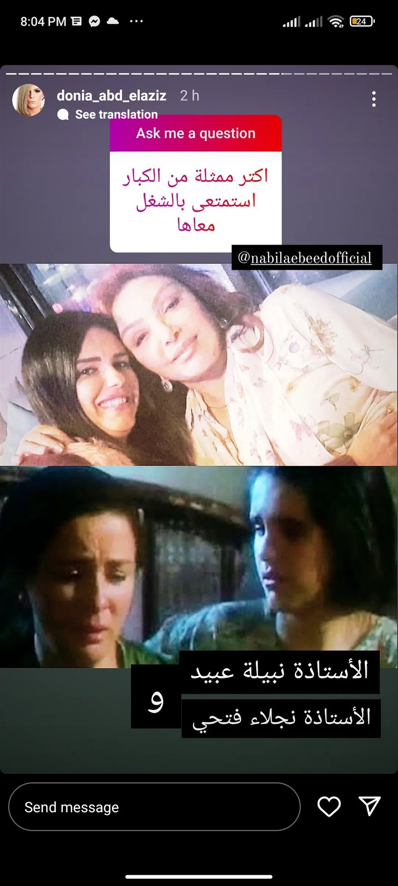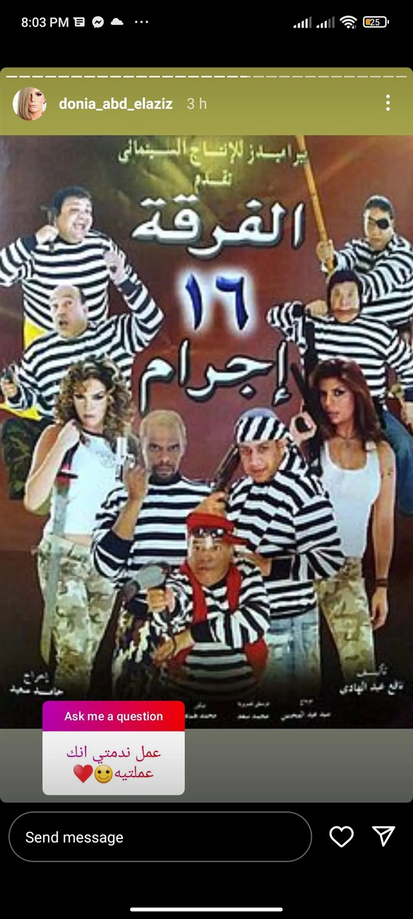 وأجابت دنيا عبد العزيز على متابعيها من خلال خاصية Ask في ستوري على موقع تبادل الصور والفيديوهات القصيرة انستجرام.
