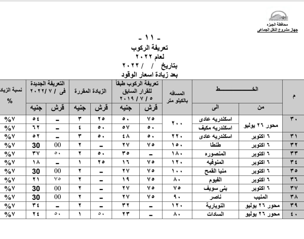 بزيادة 7%.. ننشر تعريفة المواصلات الجديدة في الجيزة