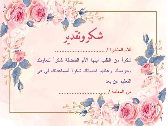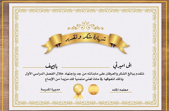 شهادة شكر وتقدير للمعلم