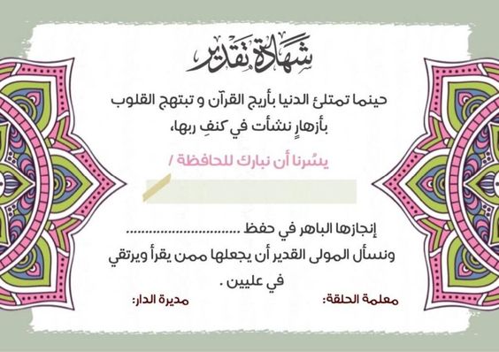 - يفضل وضع شعار المدرسة أو الإدارة التعليمية على الشهادة.