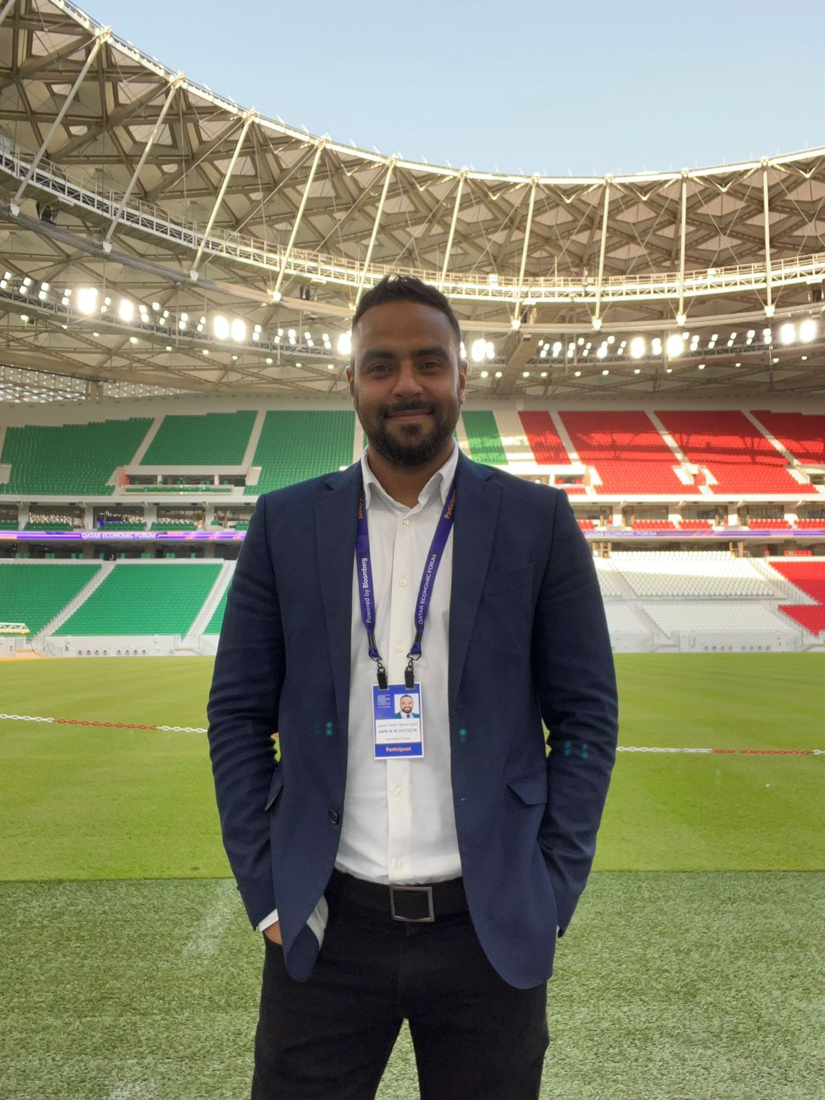 و يأتي اختيار عمرو حسين من خلال مشروع تعاون بين الفيفا ومعهد دراسات الترجمة في جامعة حمد بن خليفة، بالاشتراك مع مركز CAFE المعتمد رسميا من الفيفا لتقديم التدريب على تقديم خدمة التعليق الوصفي السمعي، حيث حضر عمرو تدريبًات مكثفًة بمقر معهد دراسات الترجمة وتبعه تنفيذ ثلاث مراحل من جلسات التقييم.