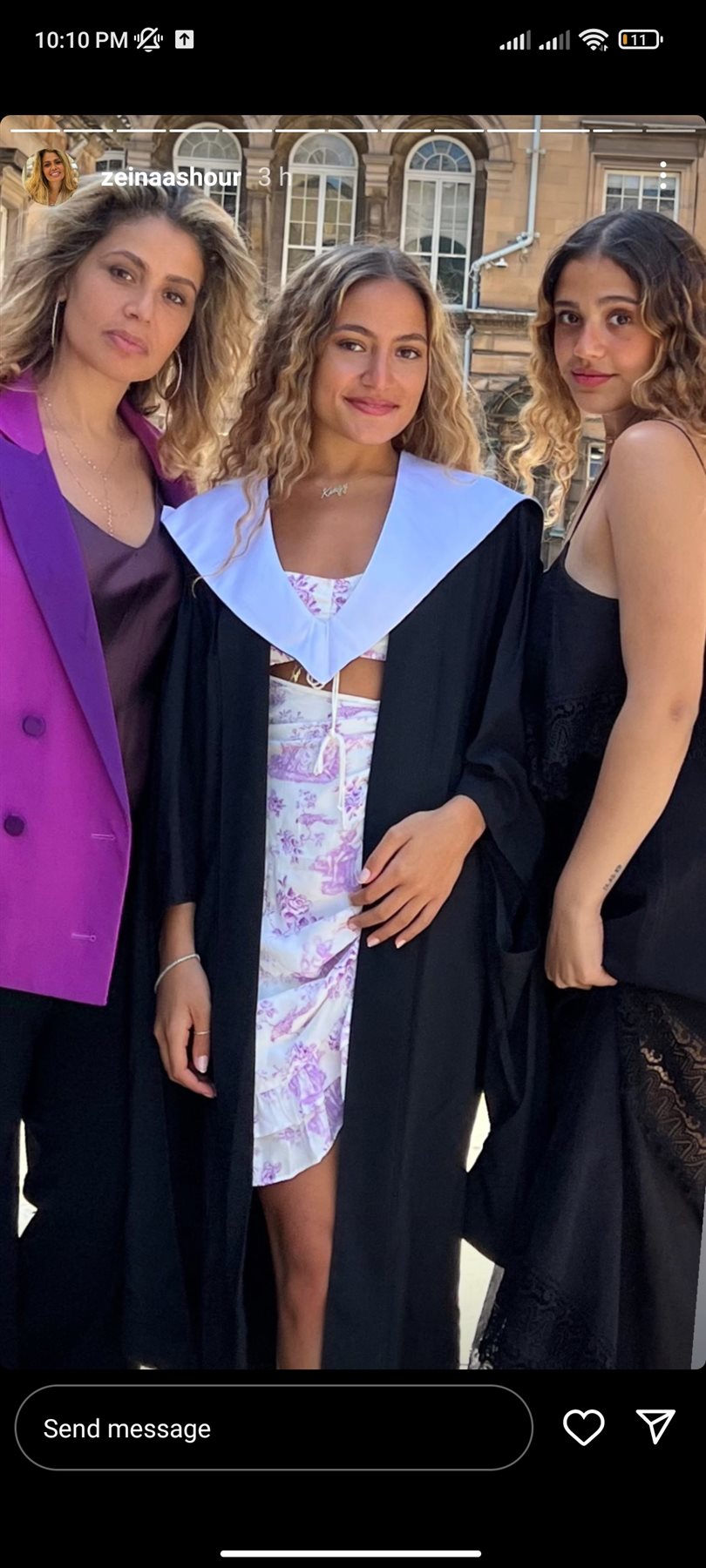 وشاركت زينة عاشور ابنتها كنزي فرحتها بالاحتفال، وحرصت على حضور الحفل في الجامعة، برفقة ابنتها الثانية جنا.