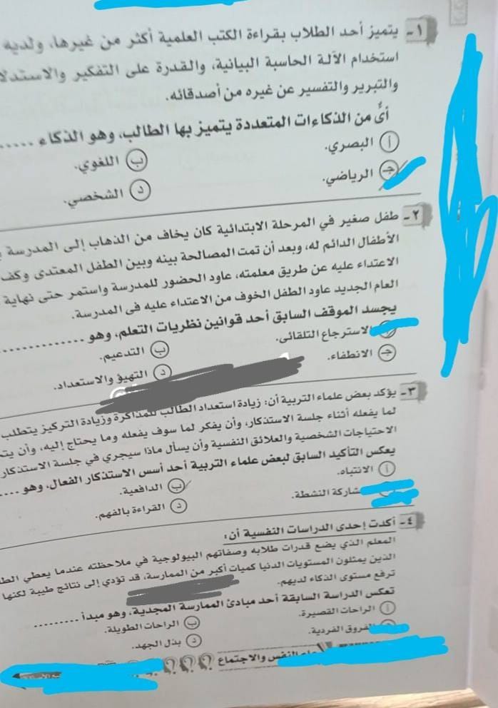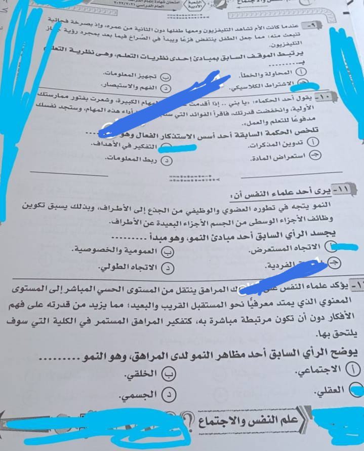تداول أسئلة من امتحان علم النفس بالثانوية العامة