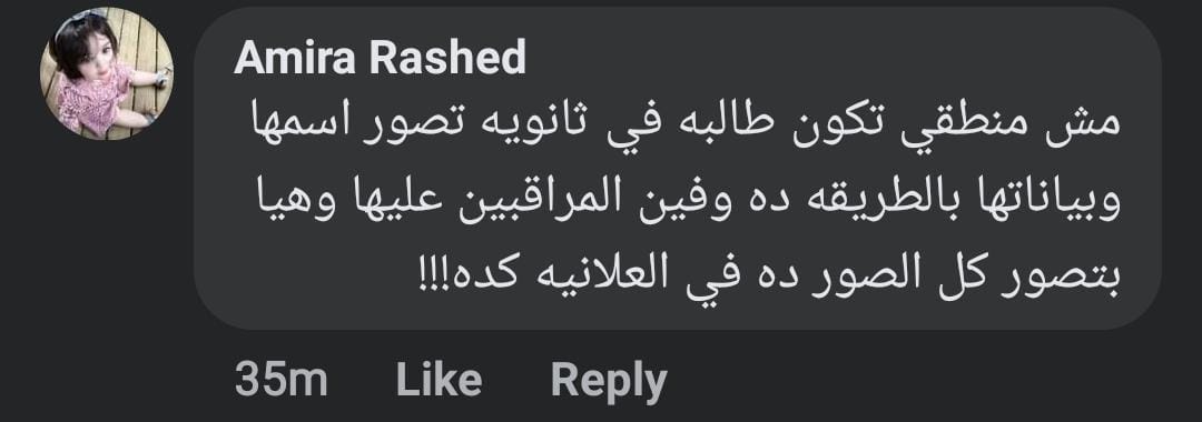 وعبرت أميرة راشد على استيائها من واقعة ظهور اسم الطالبة قائلة إنه من غير المنطقي تصوير اسم الطالبة لكافة بياناتها، متسائلة: فين المراقبين عليها والمسئولين عن اللجان؟