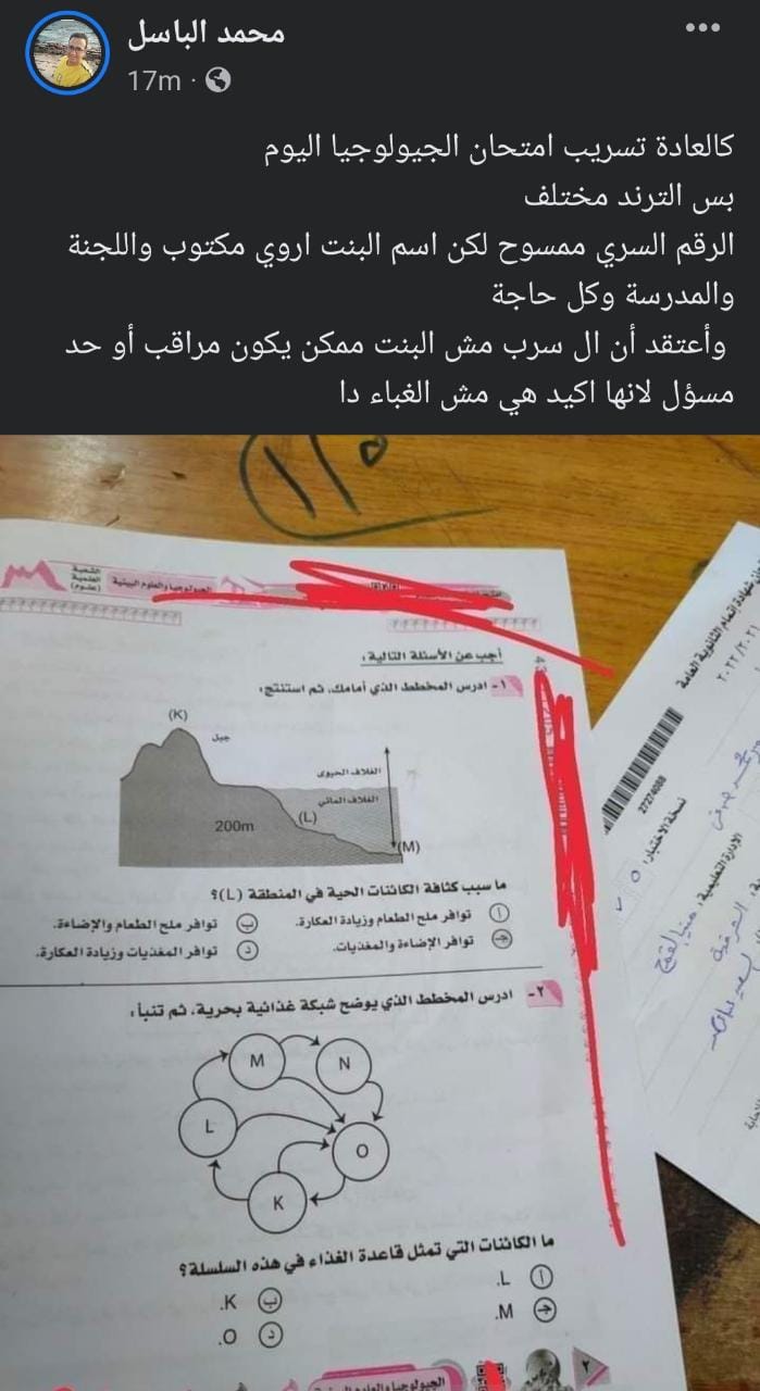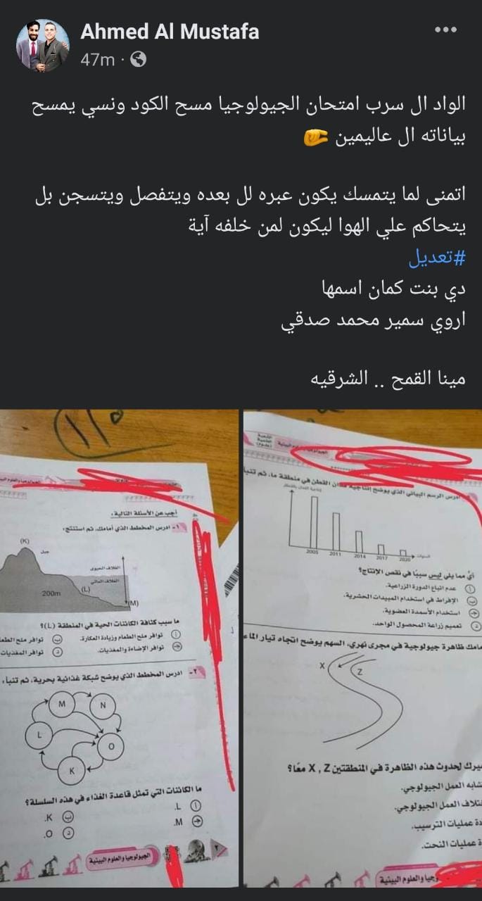 ربنا رفع ستره عنها.. تعليقات ساخرة على واقعة الطالبة مصورة اسمها بورقة امتحان الجيولوجيا بالثانوية العامة | صور