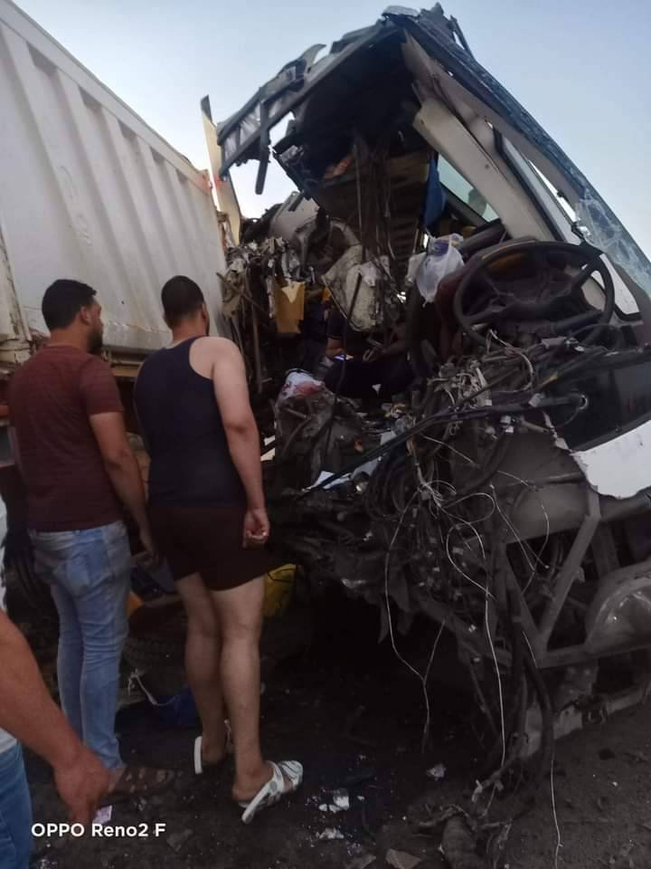 على الفور انتقلت الأجهزة الأمنية والإسعاف لمكان الحادث وتبين عن طريق المعاينة الأولية مصرع 22 شخصًا وإصابة أكثر من 30آخرين، وتشير البيانات الأولية للحادث إلى أن السيارة النقل كانت متوقفة علي جانبي الطريق لتغيير الإطار، فاصطدم بها الأتوبيس القادم من الخلف من محافظة سوهاج والمتجه إلى محافظة القاهرة.