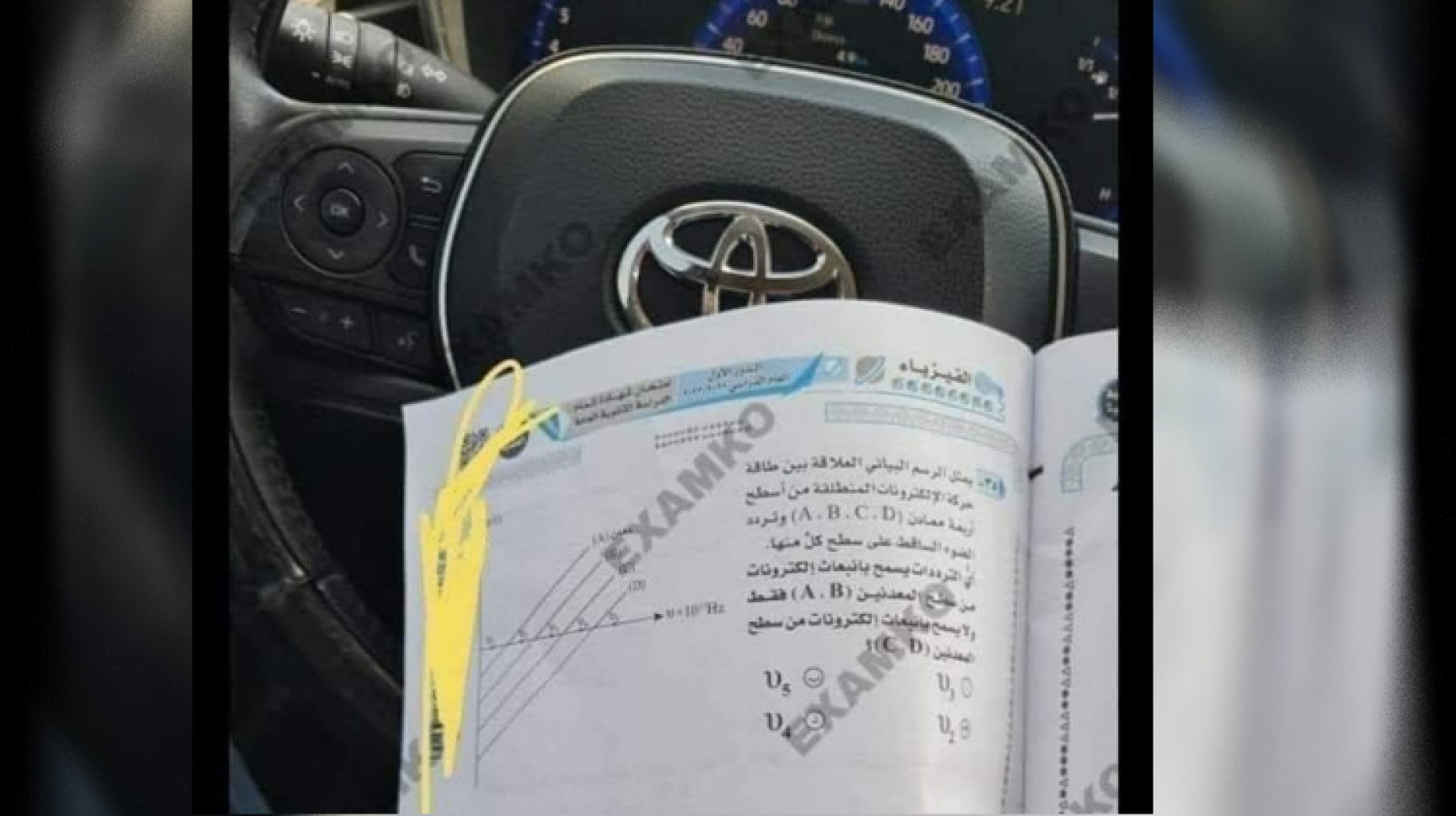 صورة لأجزاء من امتحان الفيزياء مصورة داخل سيارة