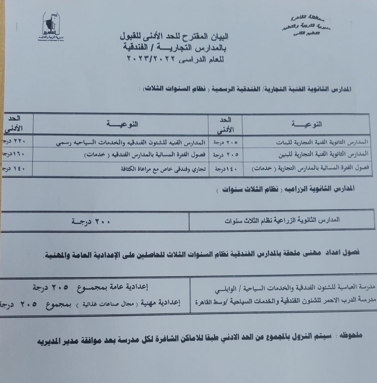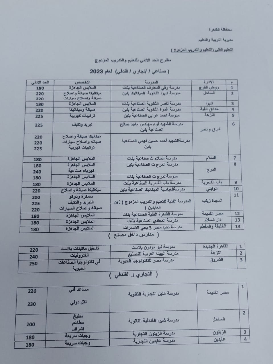 أعلنت مديرية التربية والتعليم بالقاهرة، نتيجة تنسيق القبول بالمدارس الثانوية الفنية: الصناعية، التجارية، الفندقية، الزراعية، تعليم مزدوج، وذلك بعد اعتمادها من محافظ القاهرة.
