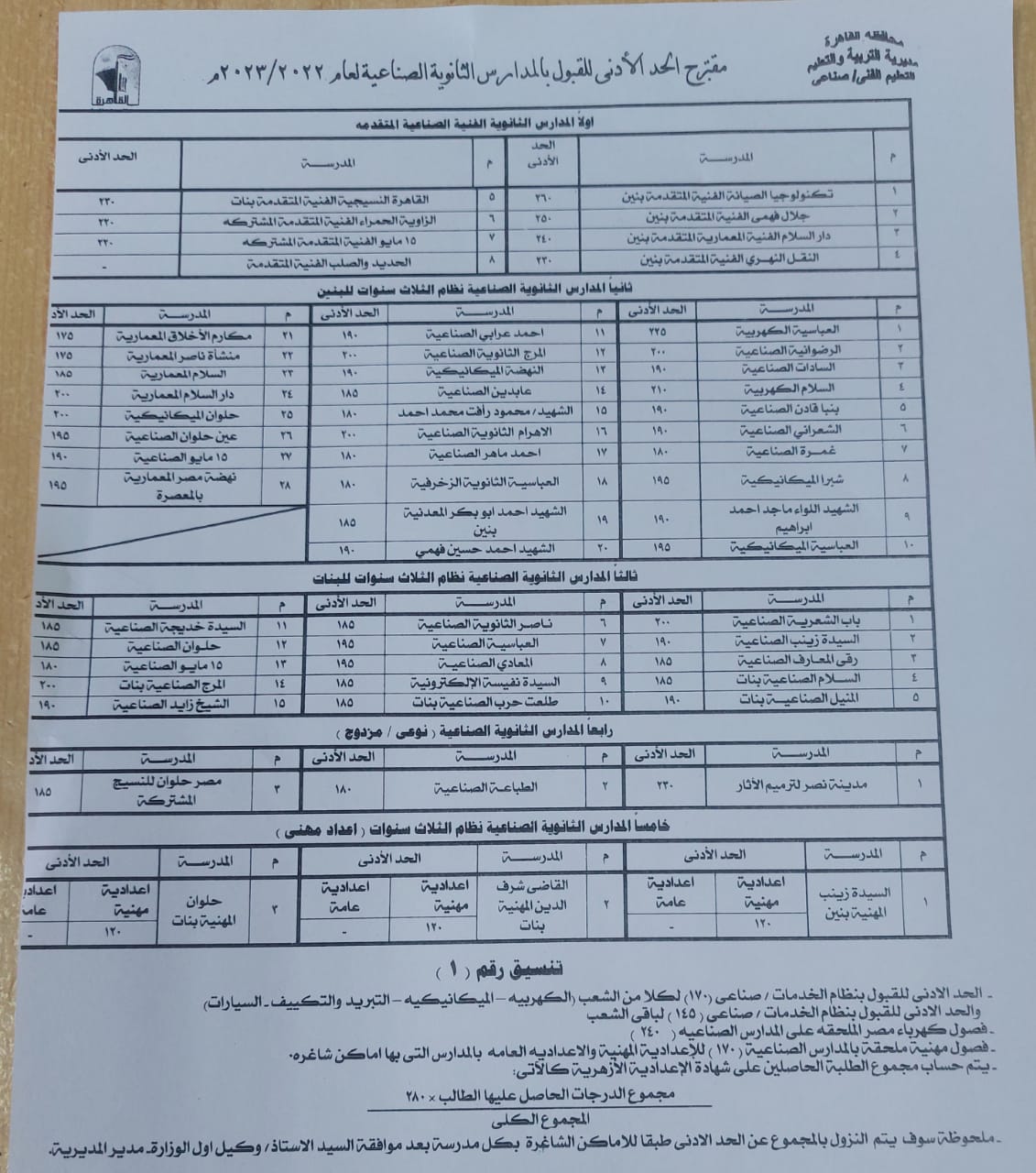 تعليم القاهرة تعلن نتيجة تنسيق القبول بالمدارس الثانوية الفنية 2022