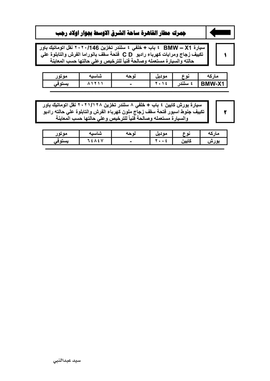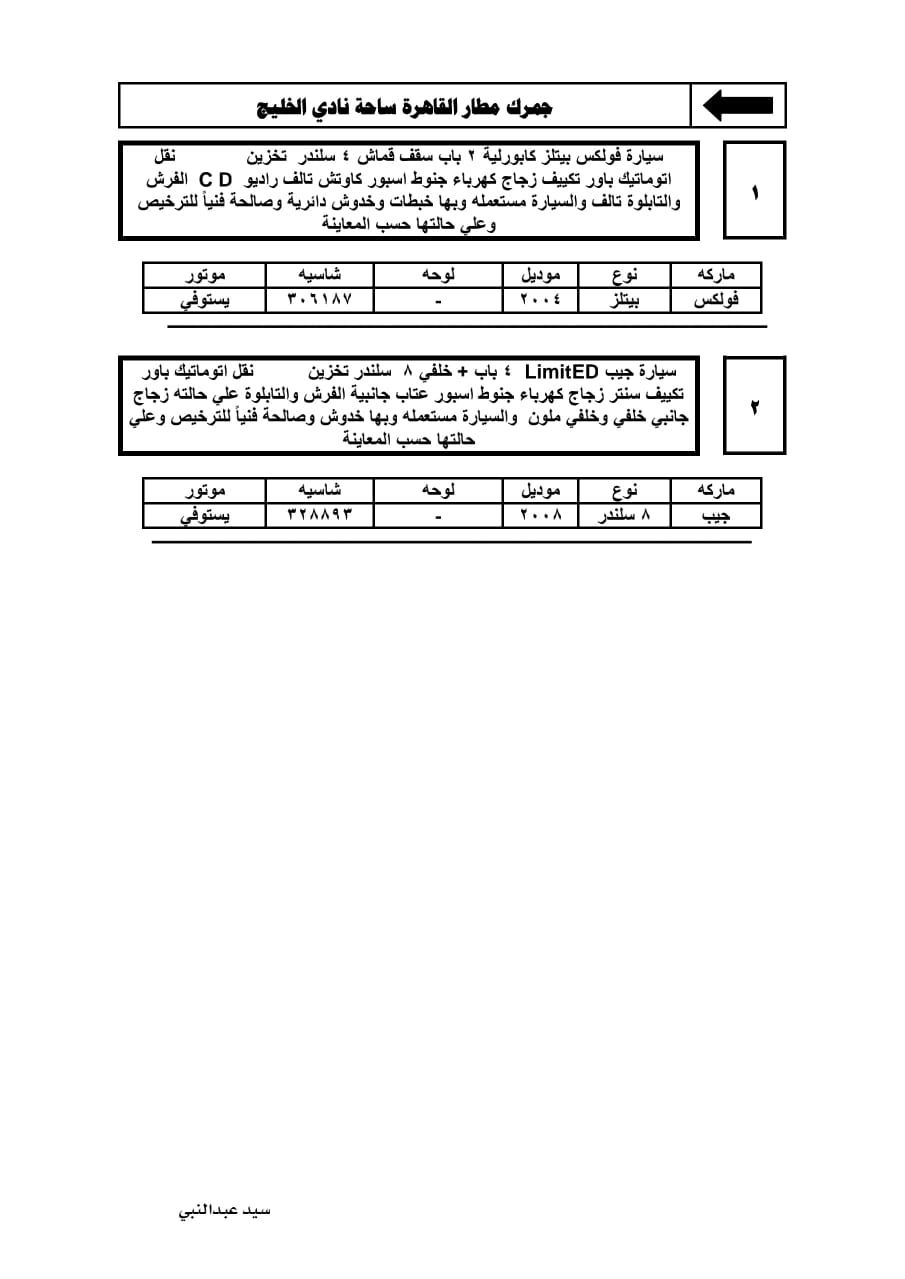 تفاصيل جلسة مزاد بيع 29 لوط سيارات مخزنة بساحة جمارك مطار القاهرة
