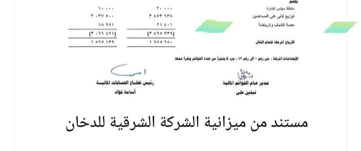 أثار مستند نُشر عبر مواقع التواصل الاجتماعي، بشأن ميزانية الشركة الشرقية للدخان، الذي تضمن بند منها حصول وزارة الشباب والرياضة على حصة من ميزانية الشركة.