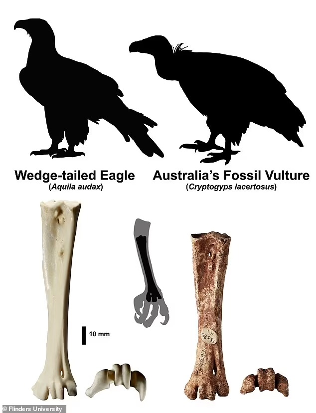 أظهرت دراسة جديدة، أن الطائر المتحجر، الذي تم اكشتافه في أستراليا، وعاش قبل 500 ألف عام، هو نسر، بحسب صحيفة ديلي ميل البريطانية.