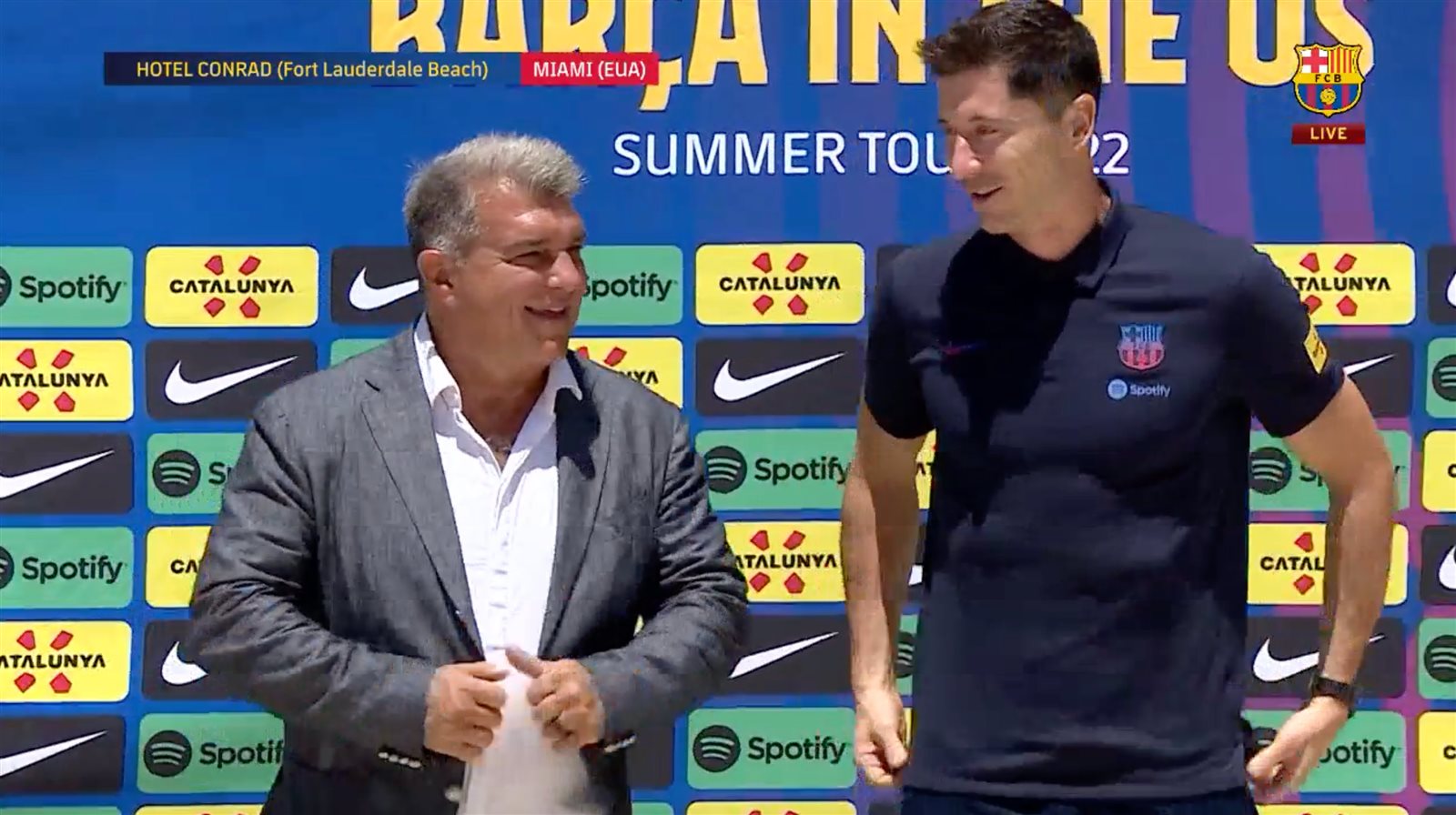 وقال خوان لابورتا، رئيس برشلونة، خلال مؤتمر تقديم ليفاندوفسكي: هذا اللاعب قدم مجهود هائل للقدوم إلى برشلونة، أنه نجم عالي، ونحن جدًا ممتنون وسعيدين بوجوده معنا، ونحن نفعل كل ما بوسعنا من أجل إعادة بناء البارسا.