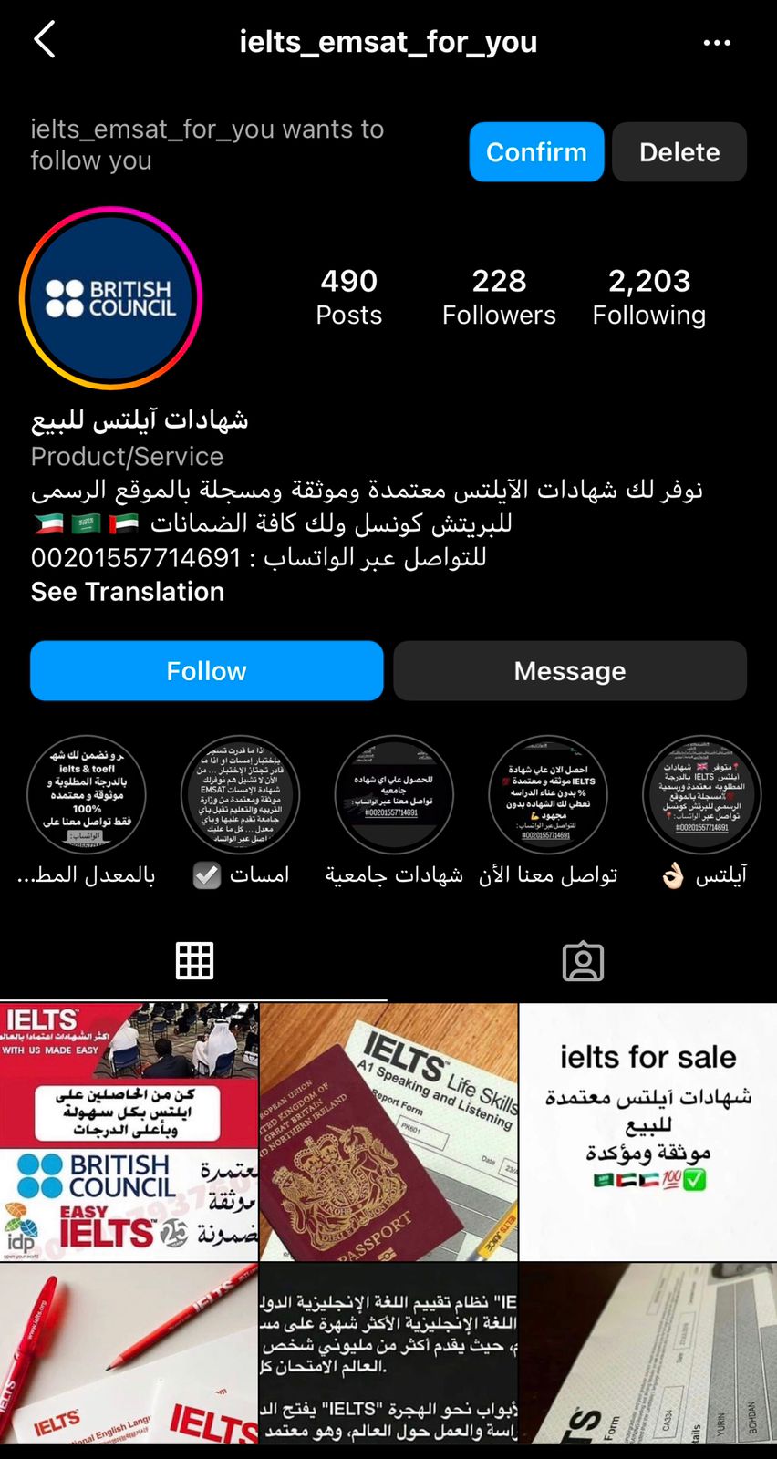 تصل لـ 500 دولار.. صفحات تحتال على الطلاب لبيع شهادات الآيلتس دون اختبارات