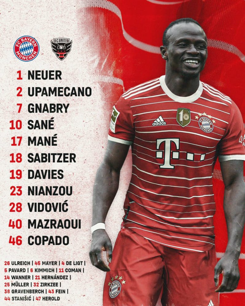 ماني يقود هجوم بايرن ميونخ أمام دي سي يونايتد وديًا