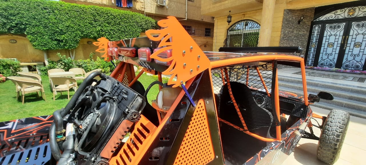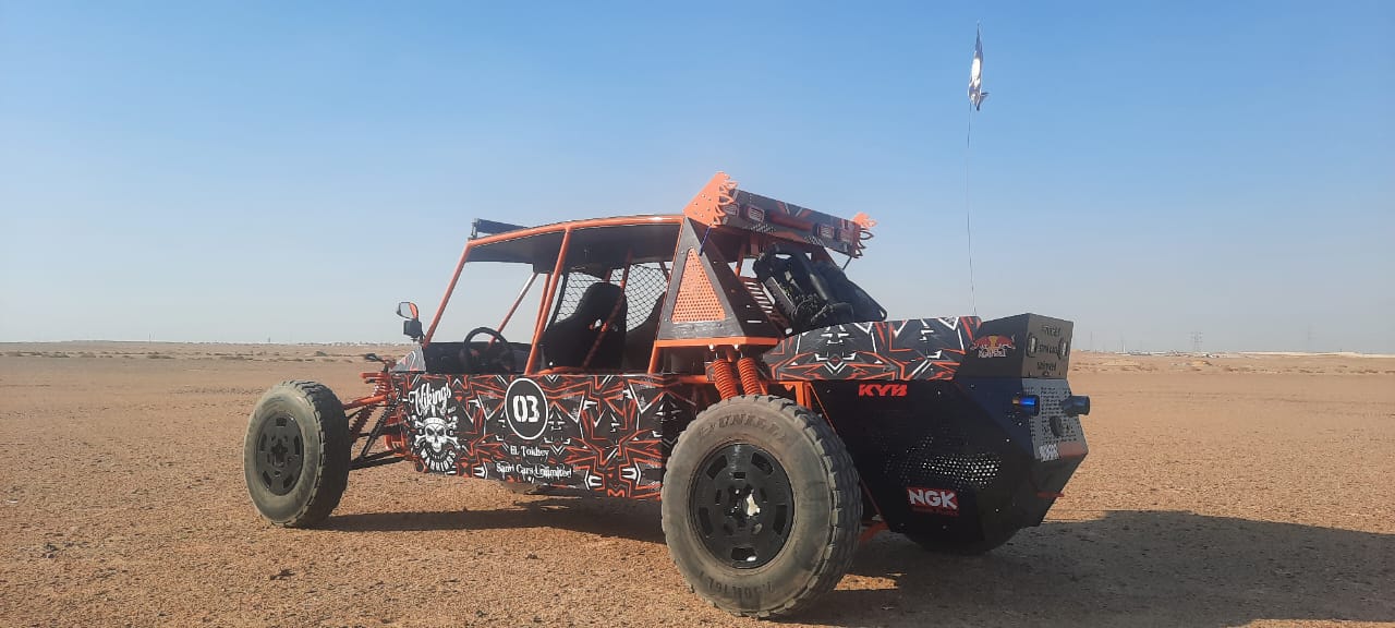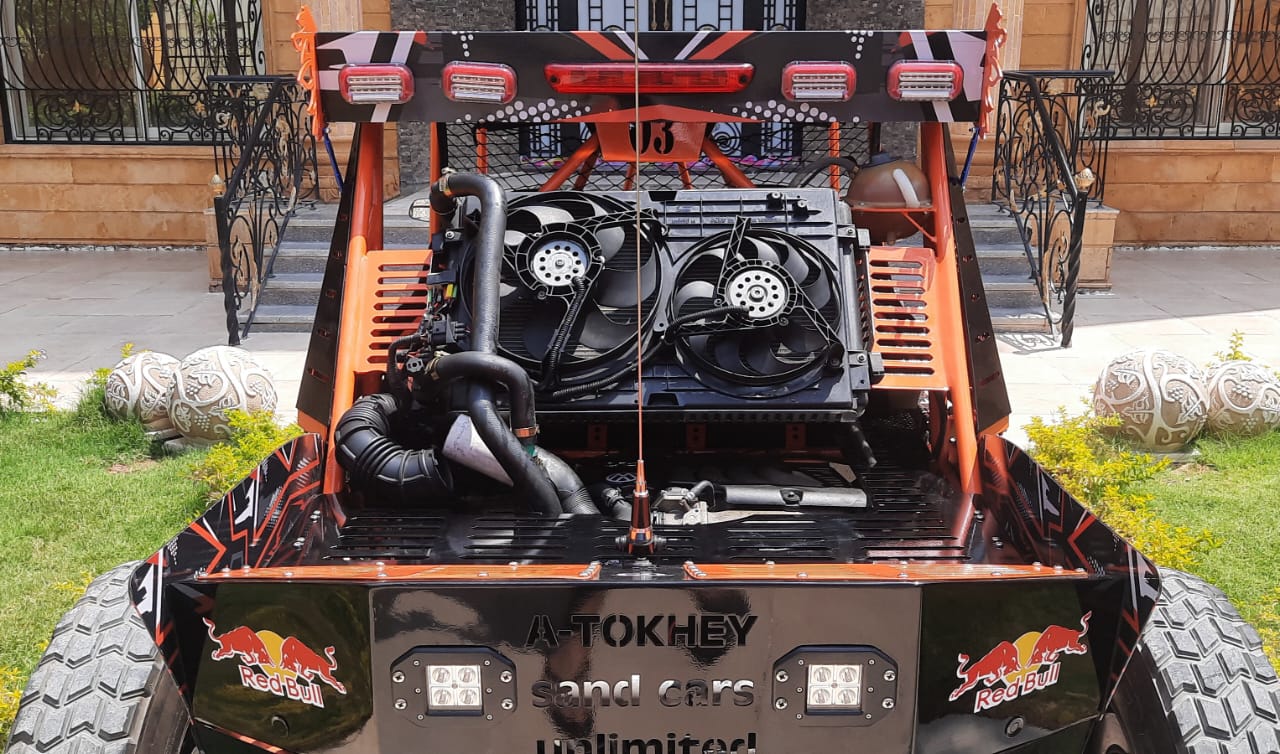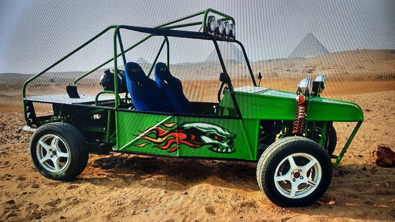 يروي الطوخي لـ القاهرة 24، أن السيارة تسمى sandrial، أو ساند كار، وهي مُخصصة للسير على الرمال بسرعة كبرى، تشبه عربة الشاطىء - البيتش باجي، ولكن في هيئة سيارة، وتتمكن من حمولة 4 أفراد.