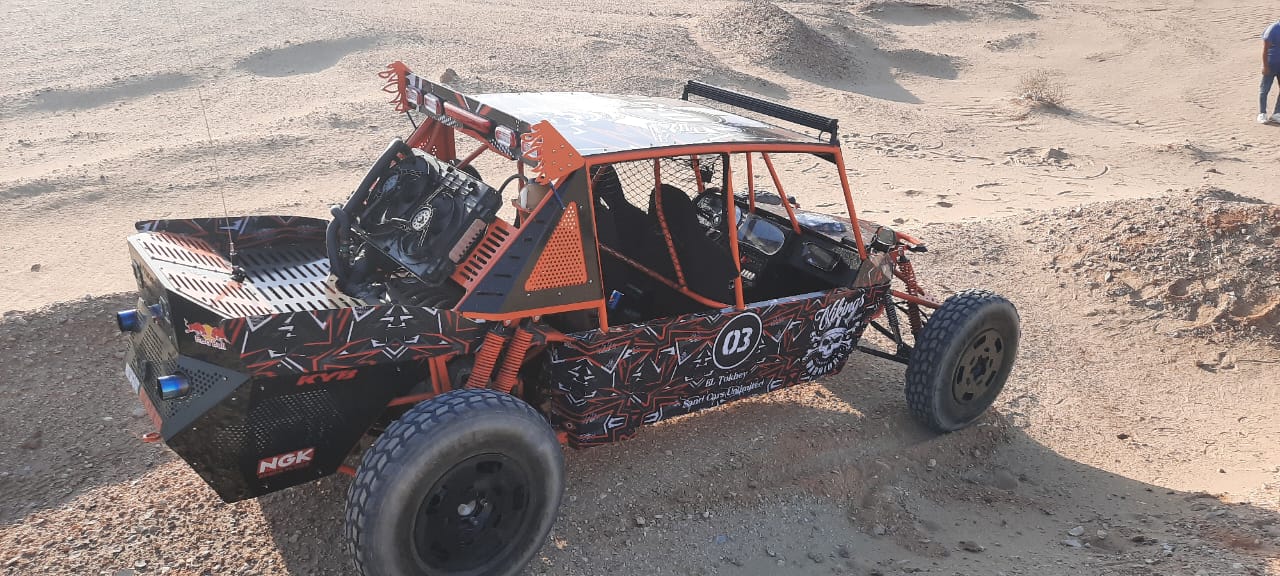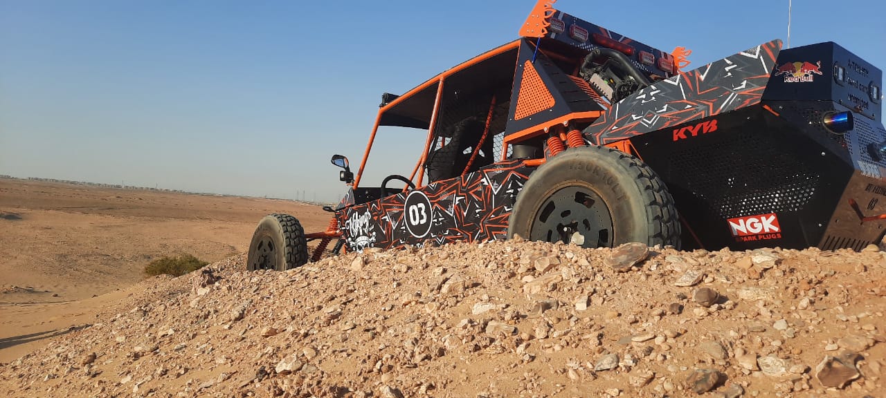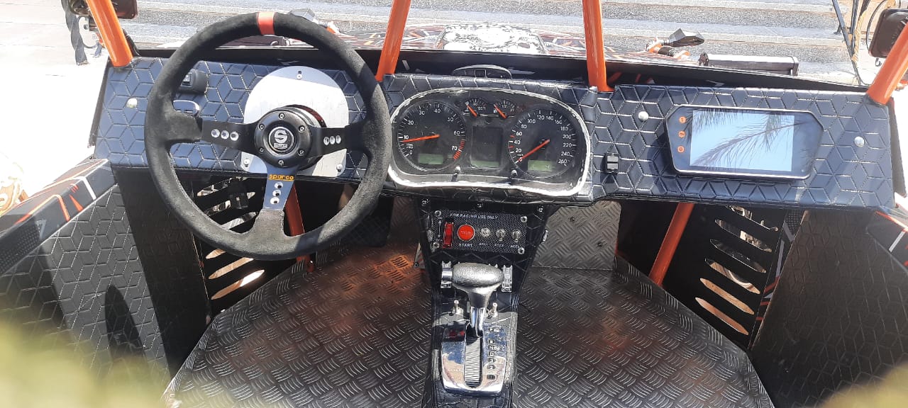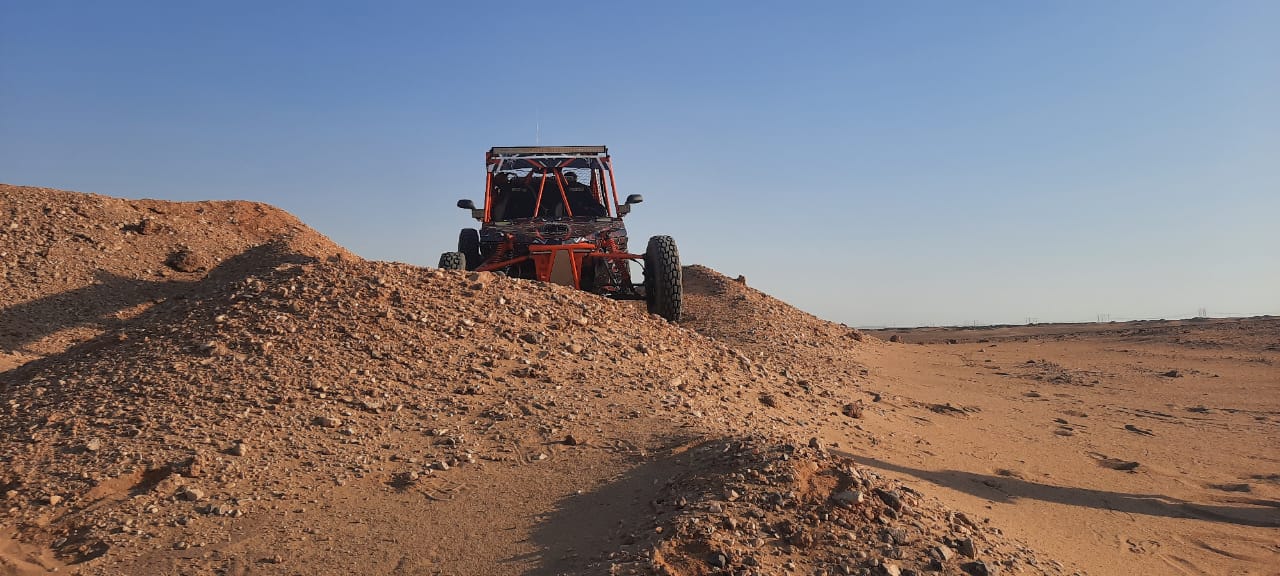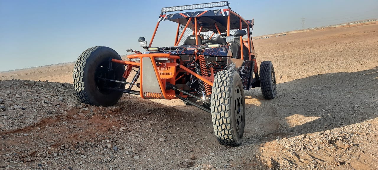 يروي الطوخي لـ القاهرة 24، أن السيارة تسمى sandrial، أو ساند كار، وهي مُخصصة للسير على الرمال بسرعة كبرى، تشبه عربة الشاطىء - البيتش باجي، ولكن في هيئة سيارة، وتتمكن من حمولة 4 أفراد.