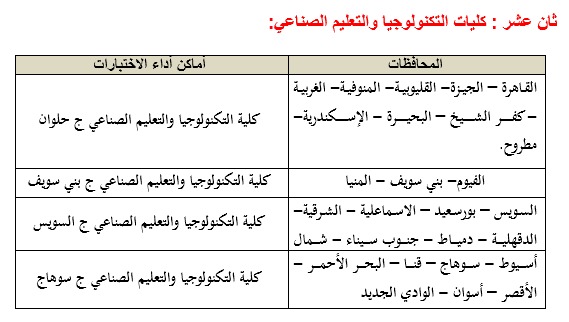 12. كليات التكنولوجيا والتعليم الصناعي بجامعات(حلوان – السويس – بني سويف –سوهاج).
