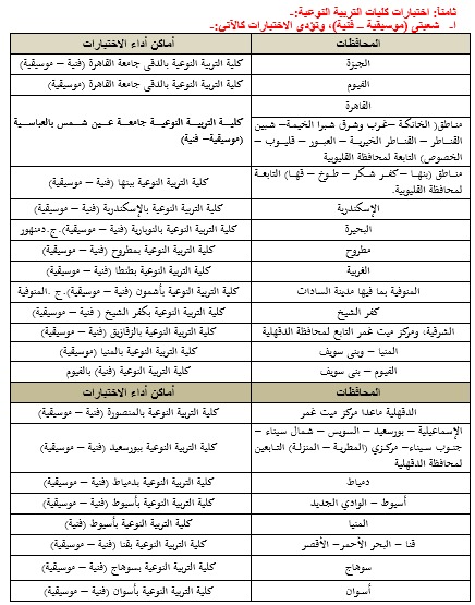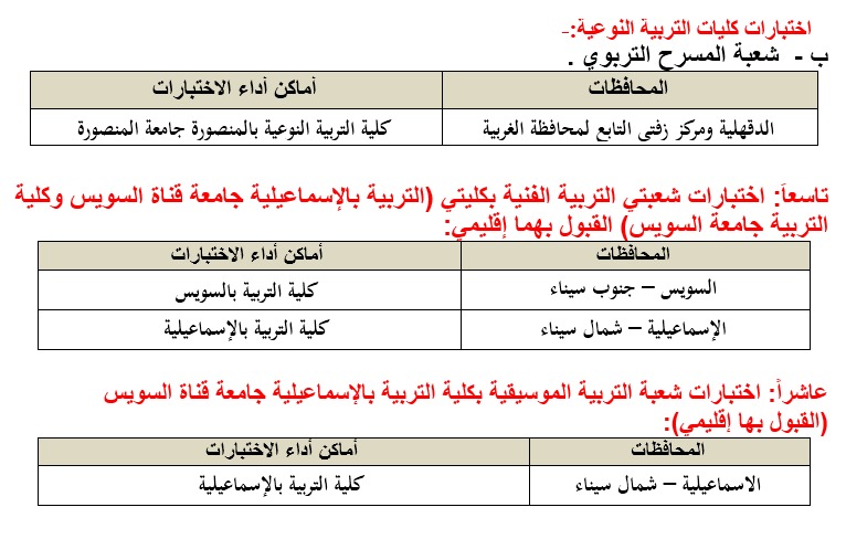 8. شعبتي التربية (التربية الفنية والتربية الموسيقية) بكليات التربية النوعية وشعبة المسرح التربوي بكلية التربية النوعية جامعة المنصورة وفرعيها (ميت غمر – منية النصر).