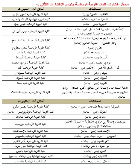 9. كليات التربية الرياضية.