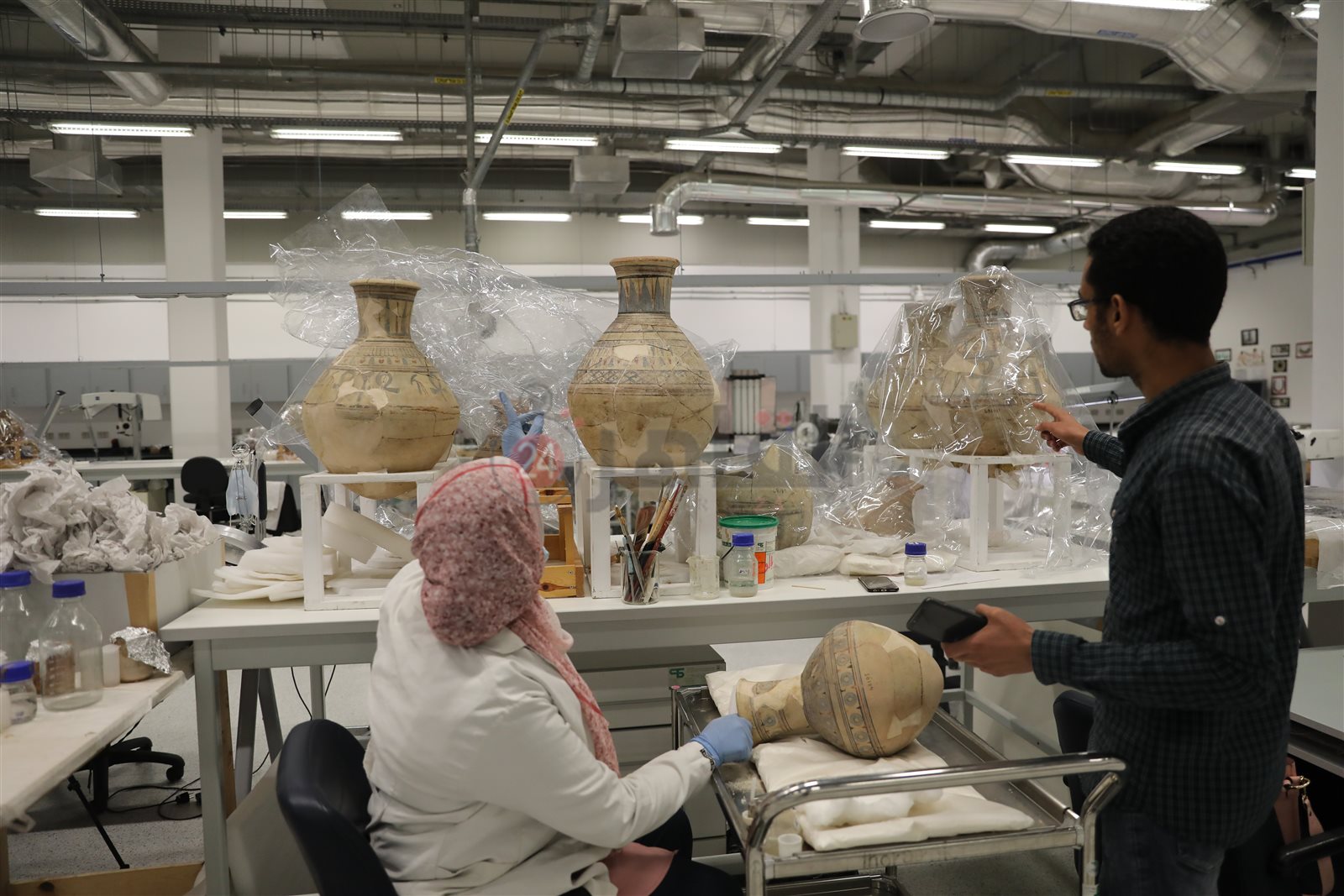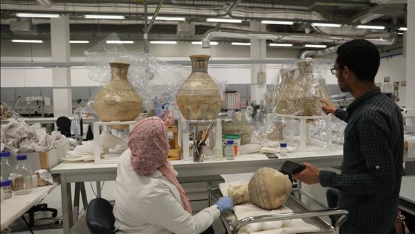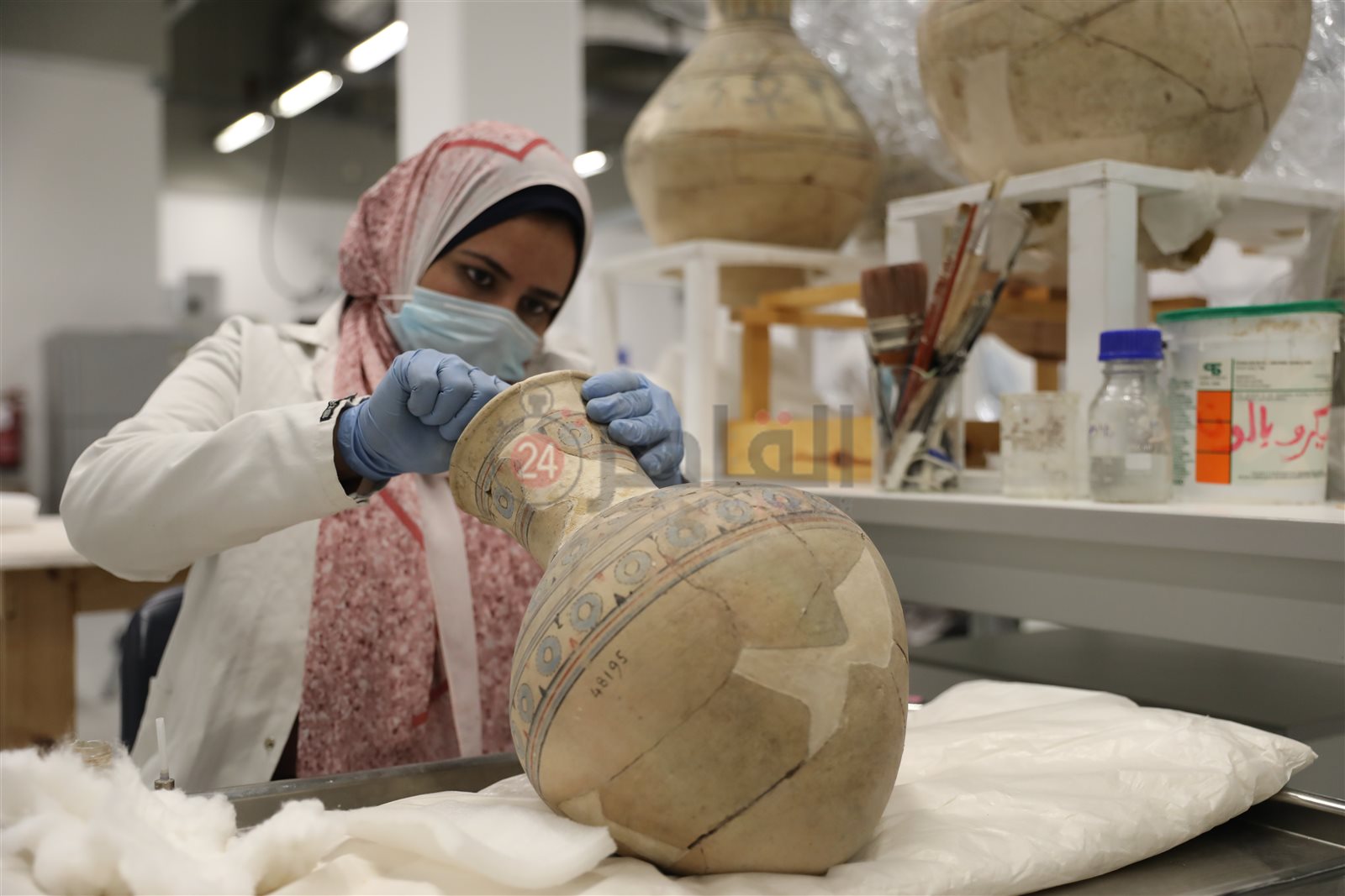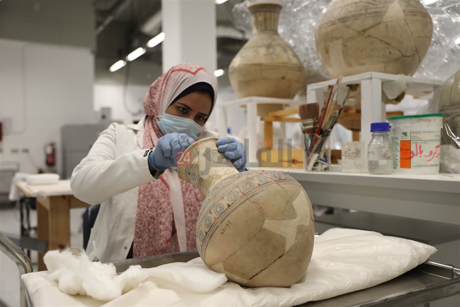قبل عرضها رسميًا.. ننشر صور قطع الفخار داخل المتحف المصري الكبير