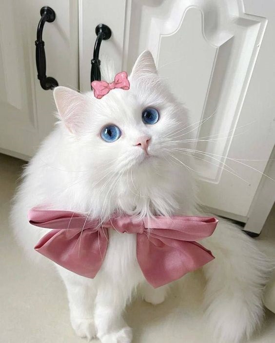 - قط راغدول يتميز بعيونه الزرقاء وفروه الكثيف الطويل باللون الأبيض.