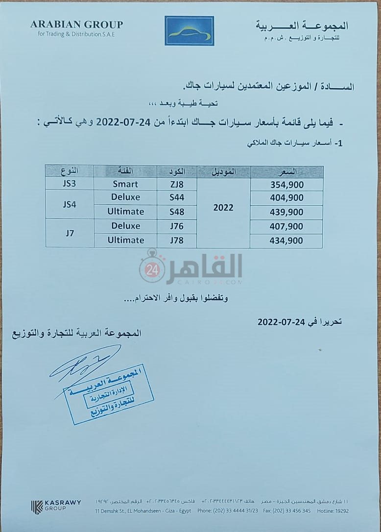 ارتفاع أسعار سيارات جاك 2022 في مصر