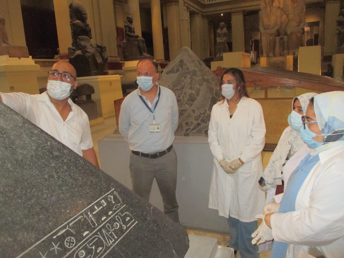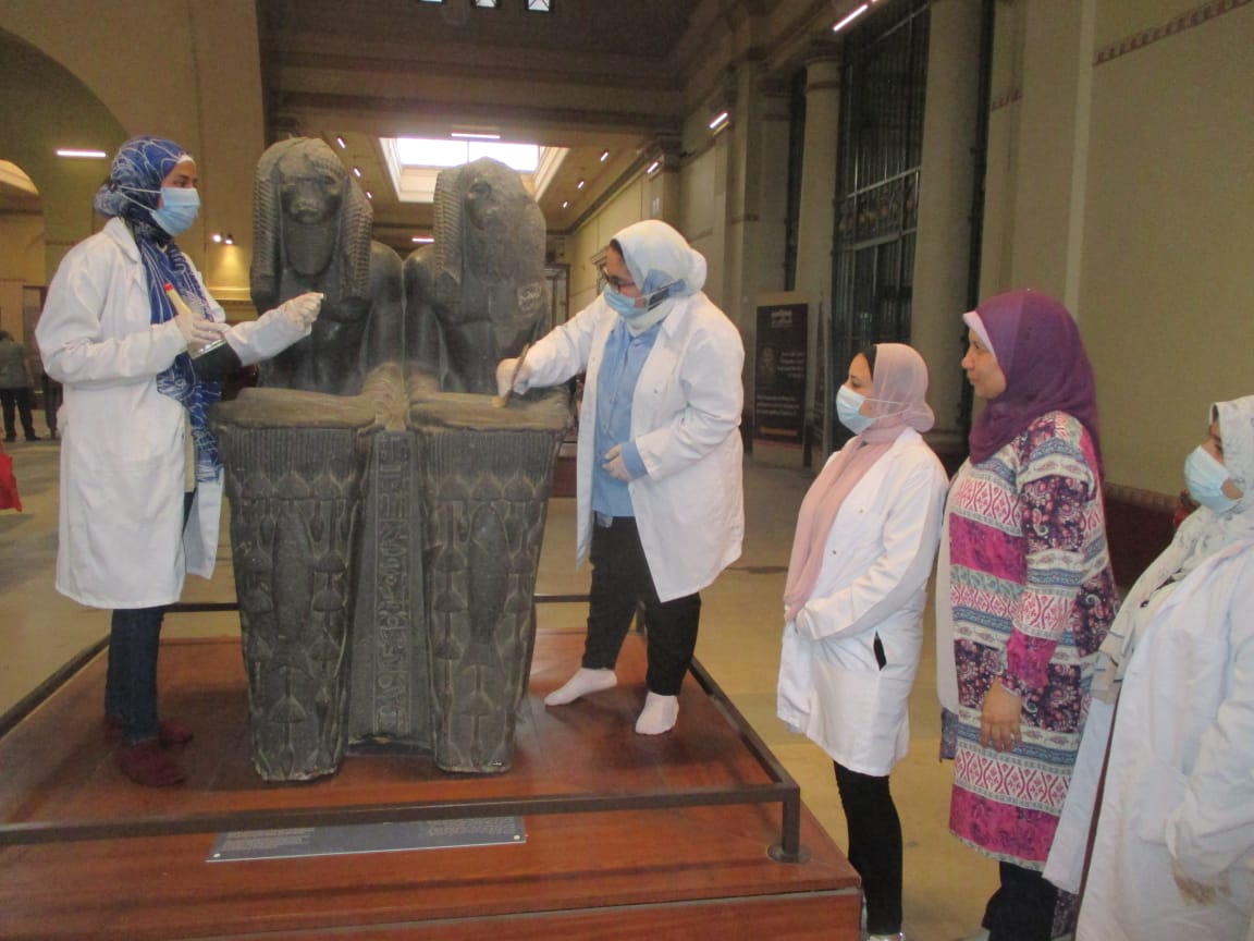 وأشارت إلى أن الطلاب المتدربين يشاركون في أعمال الصيانة الوقائية والتنظيف للقطع الحجرية الكبيرة المعروضة بالمتحف، حيث أن ذلك يتم بمشاركة وتحت إشراف إدارة ترميم المتحف المصري.