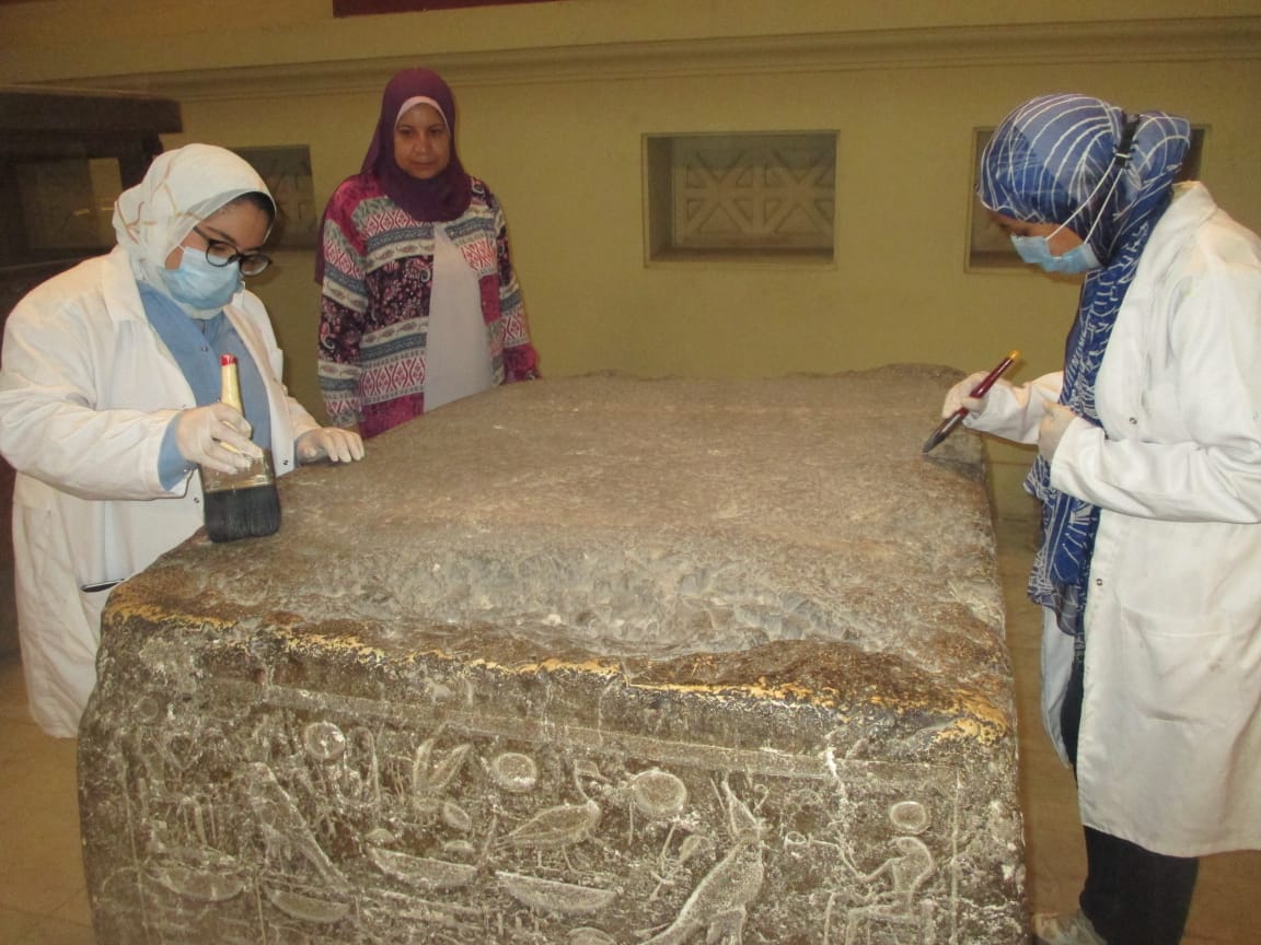 وأشارت إلى أنه من أبرز أعمال الترميم التي تمت مؤخرًا بالمتحف في إطار مشروع تطويره، هو ترميم وحفظ نقوش من عصر الدولة القديمة من المعبد الجنائزي للملك ساحورع من الأسرة الخامسة، والذي يُصور موكبًا للآلهة يقدمون القرابين للملك، كما تم ترميم نقوش مقبرة نفر ماعت، وهو مثال نادر لجدار تم نقشه وملء النقش بالعجينة الملونة، ويعود لعصر الدولة القديمة، واُكتشف في مصطبة مقبرة نفر ماعت وزوجته إتيت، وتم تصويره يتلقى قرابينًا لمساعدته في الحياة الآخرة، بما في ذلك مشاهد لصيد الحيوانات منها الفهود والثعالب والطيور، ومناظر الأنشطة الزراعية.